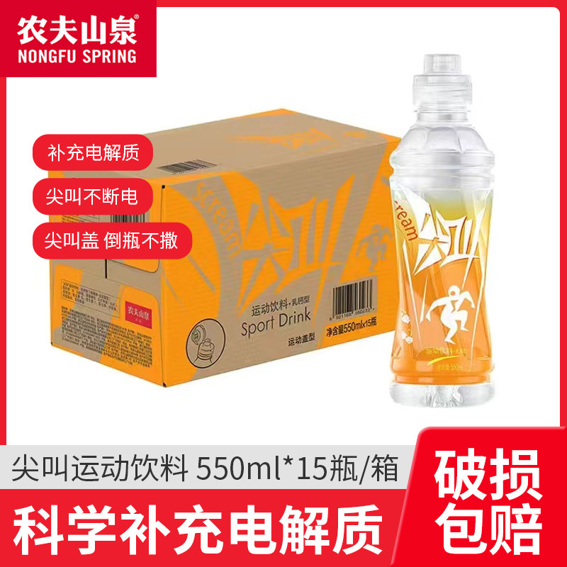 尖叫550ml运动饮料西柚柠檬柑橘黄金桃电解质水饮料尖叫乳钙型