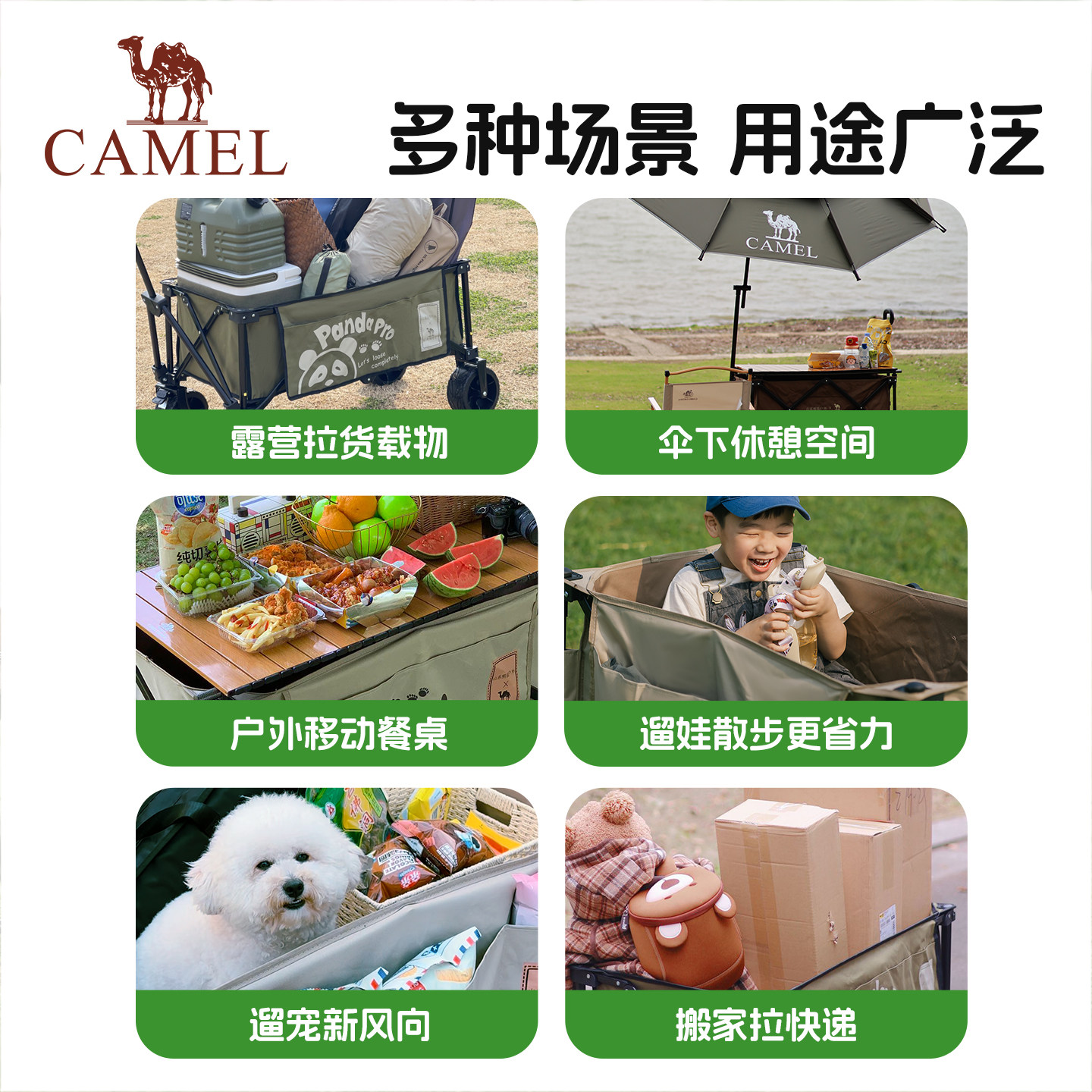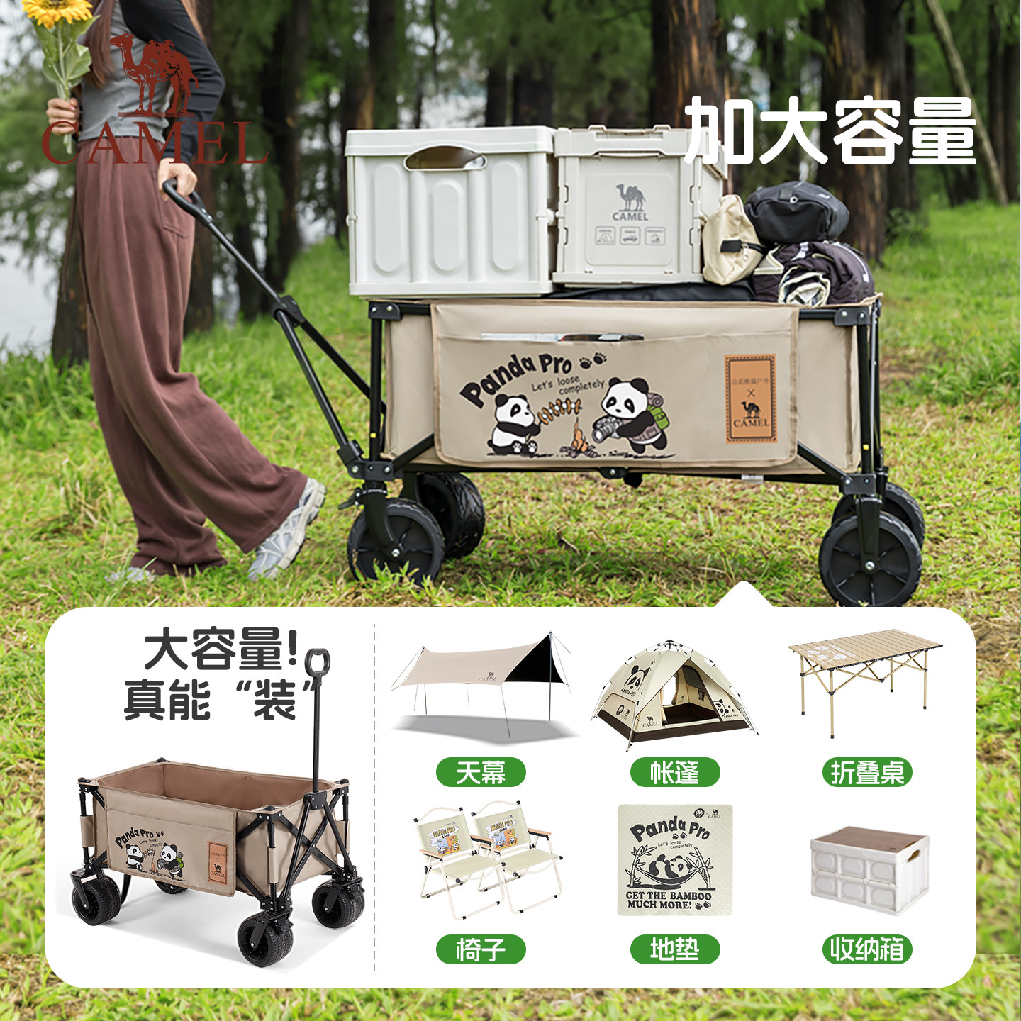 camel露营车户外折叠野营推车营地拖车野餐大容量拉快递儿童可躺