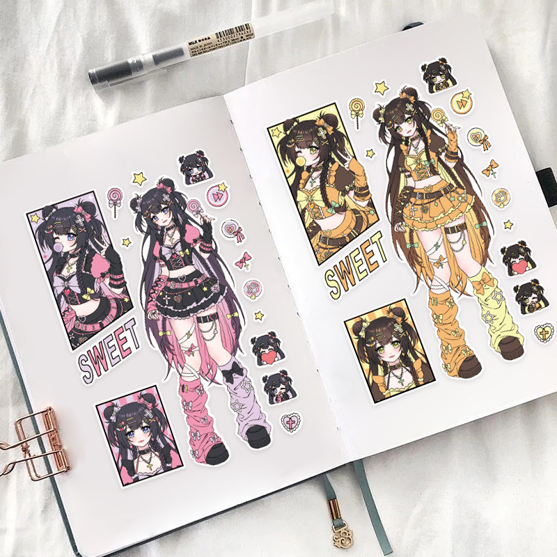 动漫人物贴纸二次元女孩手机壳行李箱粘贴画高颜值手账笔记本装饰