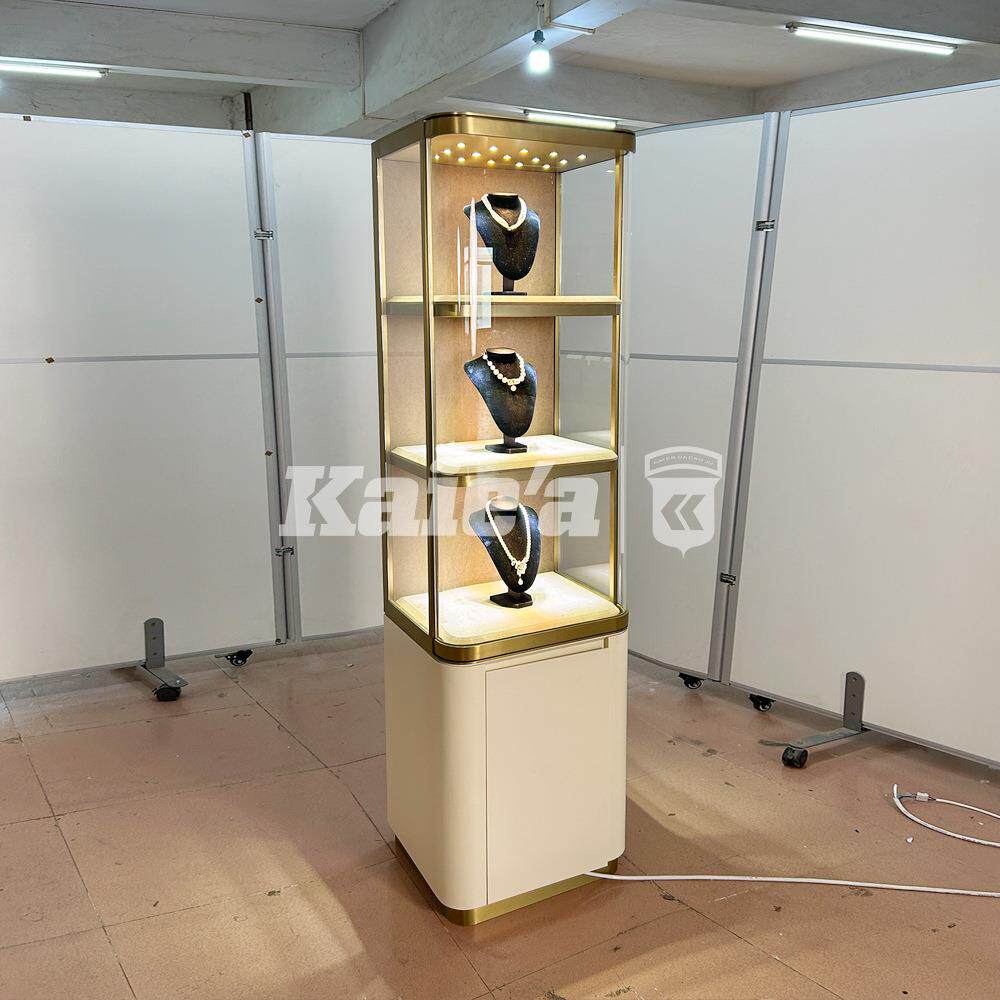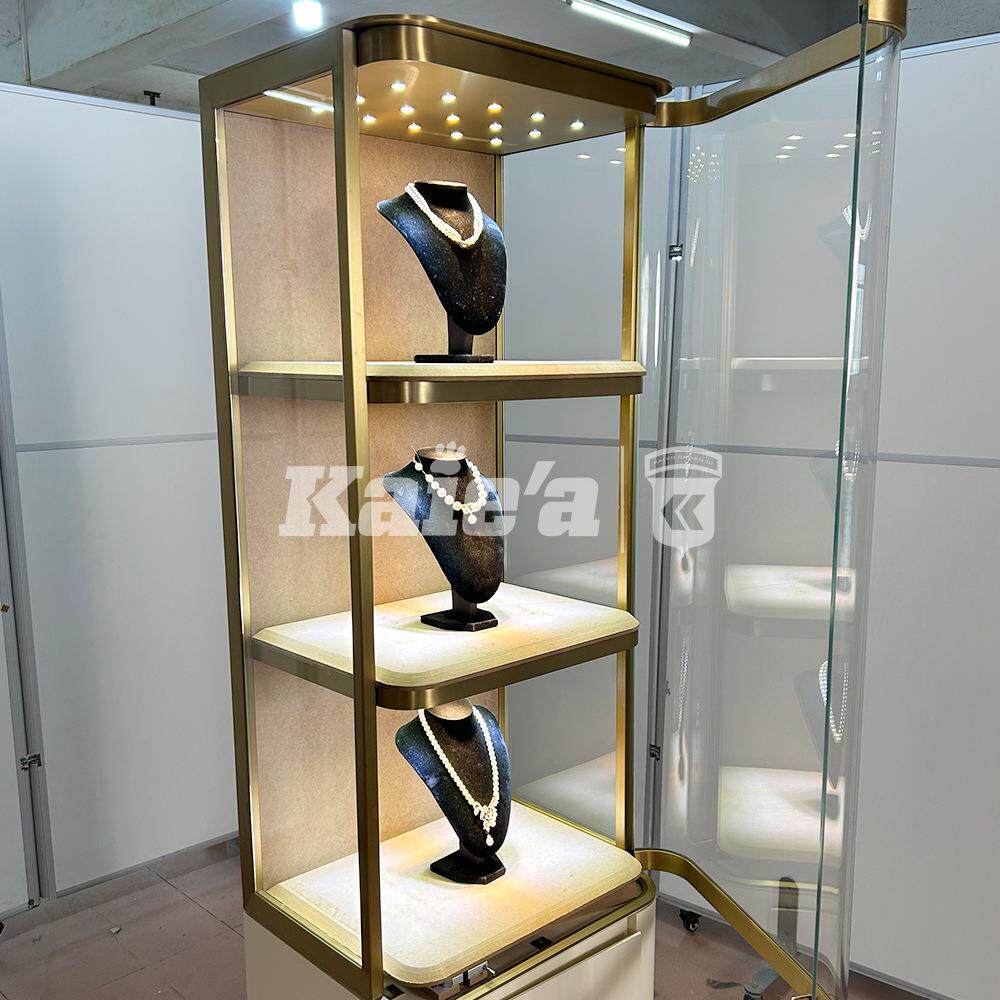 定制高端珠宝展示柜立柜不锈钢奢侈品玉器翡翠热弯玻璃展柜陈列柜
