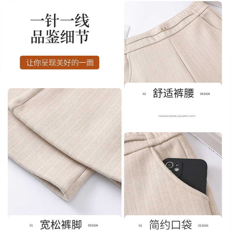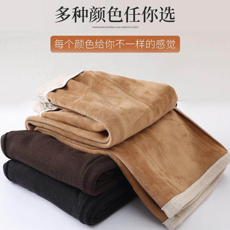 时尚妈妈秋冬加绒毛呢阔腿裤时尚加厚保暖直筒裤中老年人女长裤子