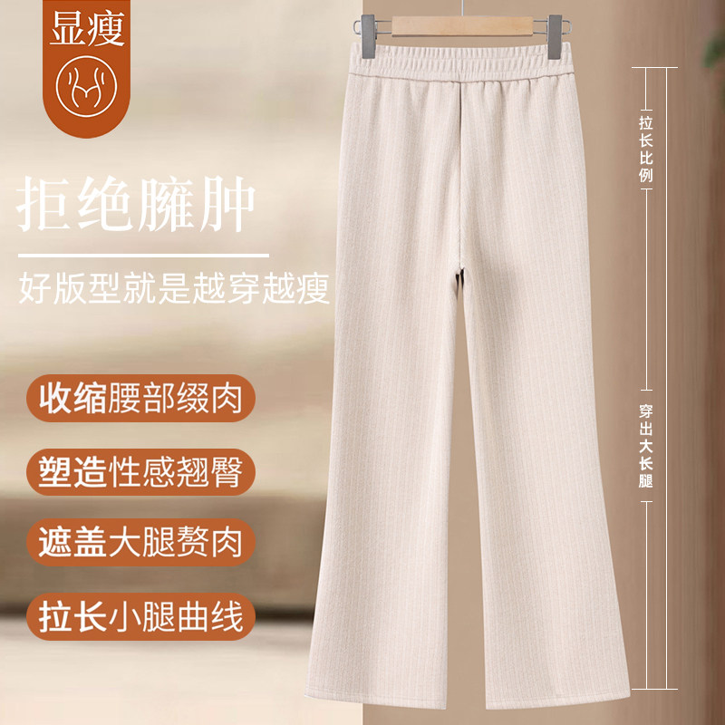 妈妈裤子春秋款松紧高腰弹力中老年女裤宽松大码直筒奶奶加绒长裤