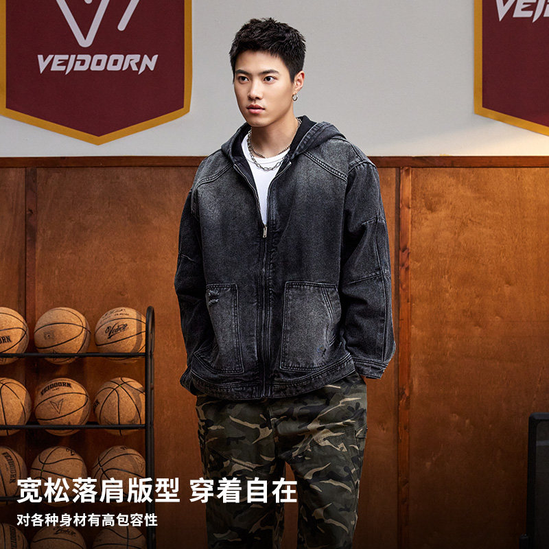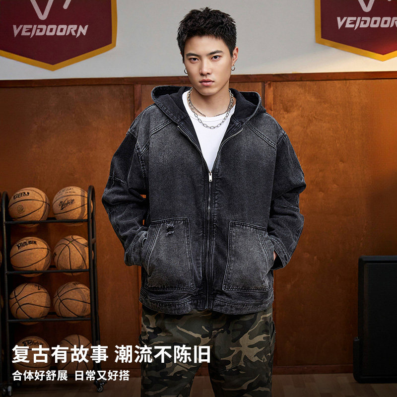 维动烬潮美式水洗牛仔外套男秋高街复古工装夹克百搭情侣休闲上衣