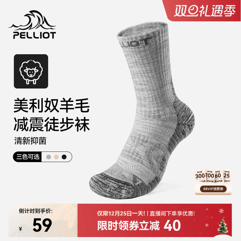 伯希和户外徒步袜男美利奴羊毛冬专业登山保暖跑步运动袜子中筒女