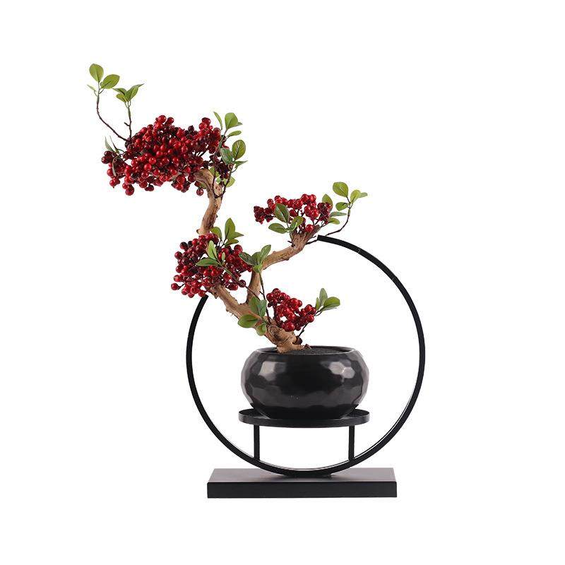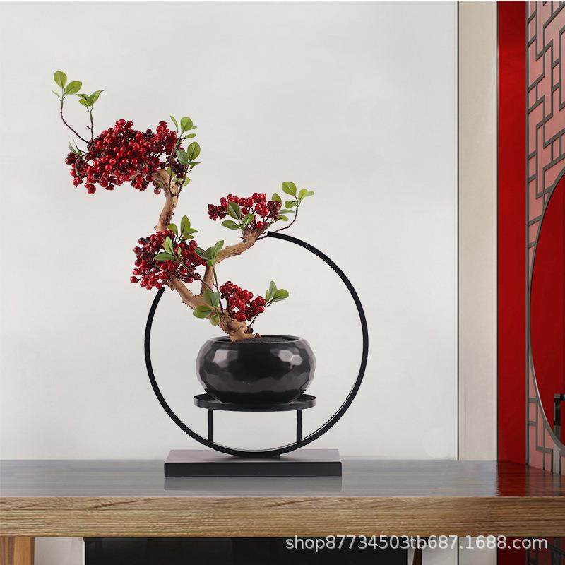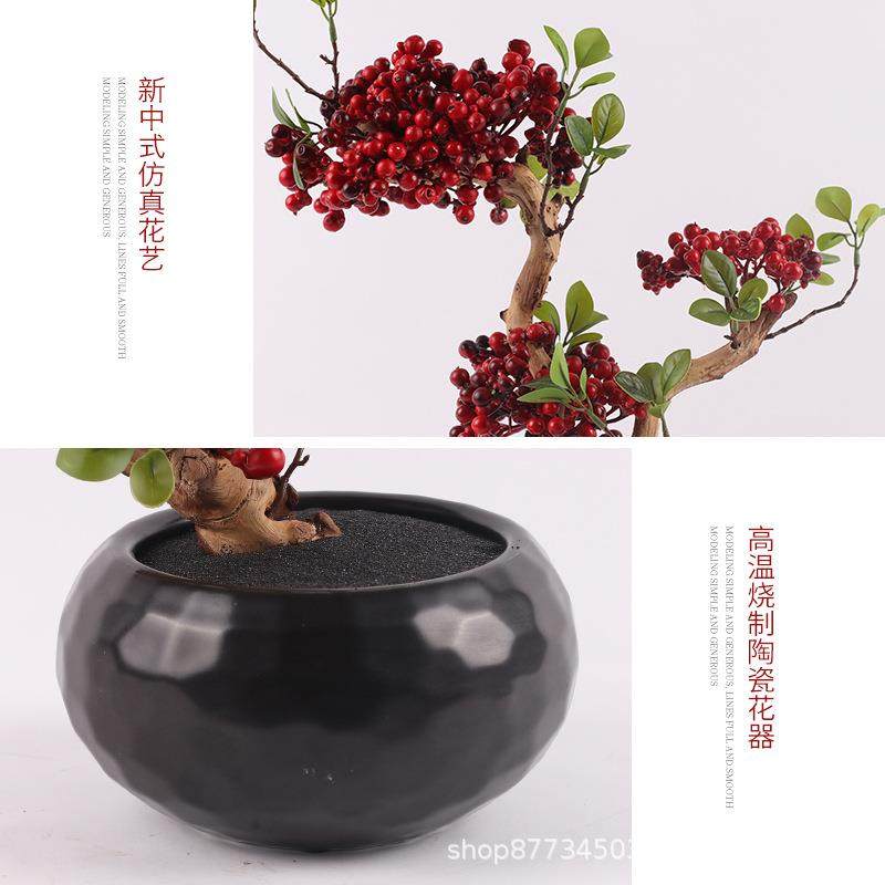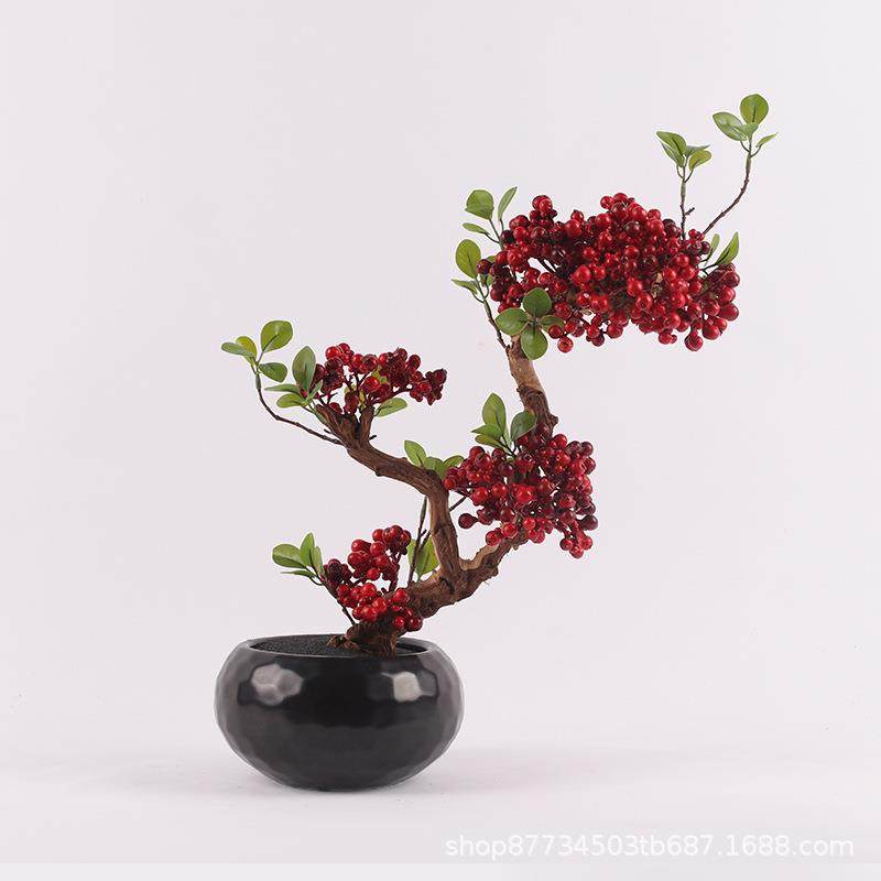 新中式红色果子仿真植物盆景样板间酒店玄关售楼处盆栽装饰品摆件