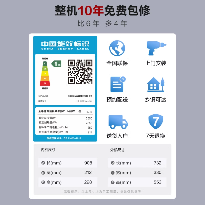 【政府补贴】格力空调新一级能效大1匹冷暖空调挂机AI节能王子
