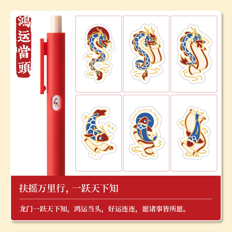 KACO鱼跃龙门书源中性笔高颜值学生用笔联名款大容量龙年黑色按动笔速干顺滑可换替芯刷题笔国博衍艺0.5mm
