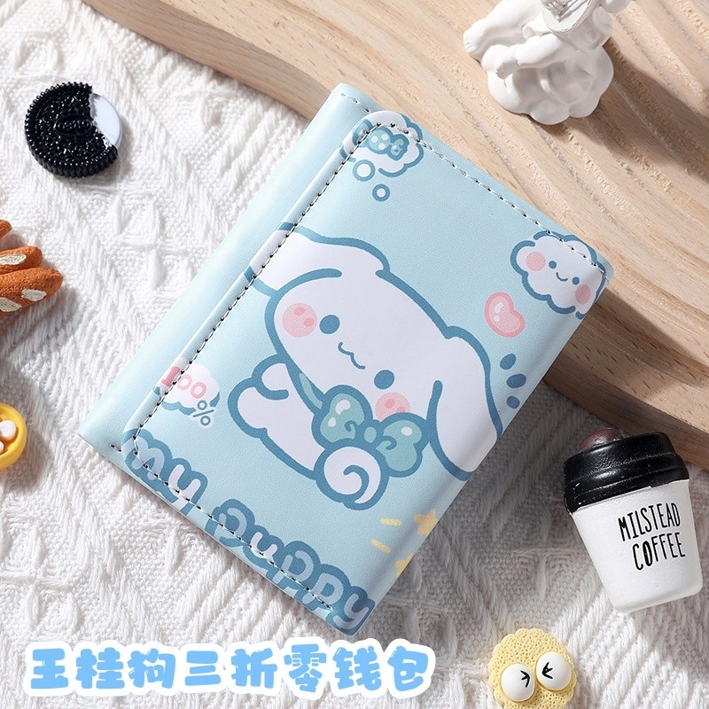 玉桂狗三折钱包大耳狗女小众卡通可爱小零钱包学生月桂狗短款钱夹