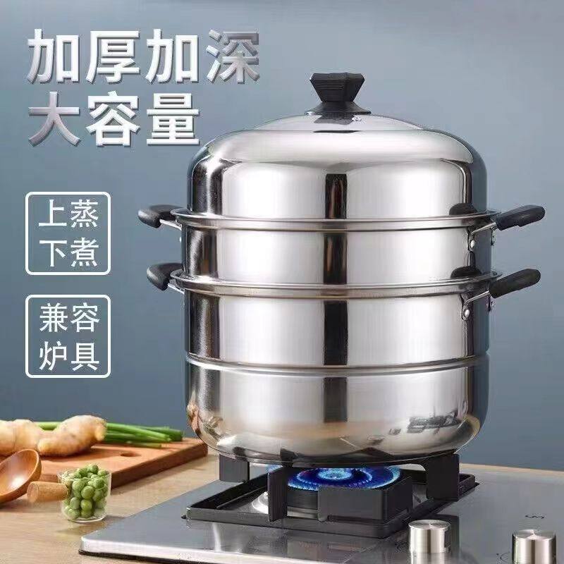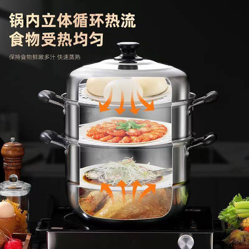 不锈钢蒸锅加厚蒸笼多功能家用笼屉煮炖大容量电磁炉专用多层三层