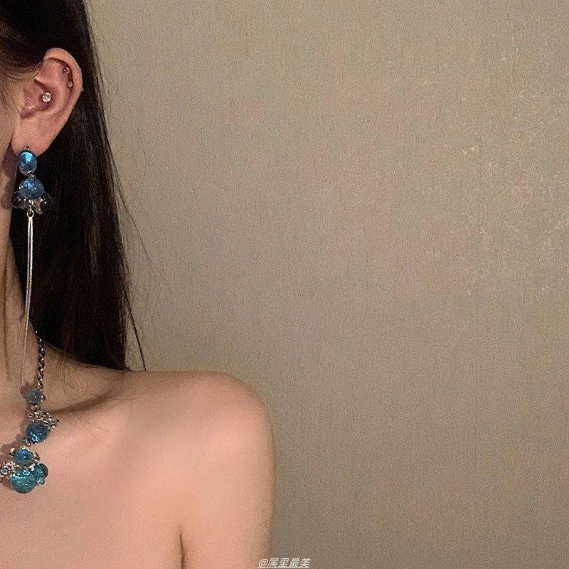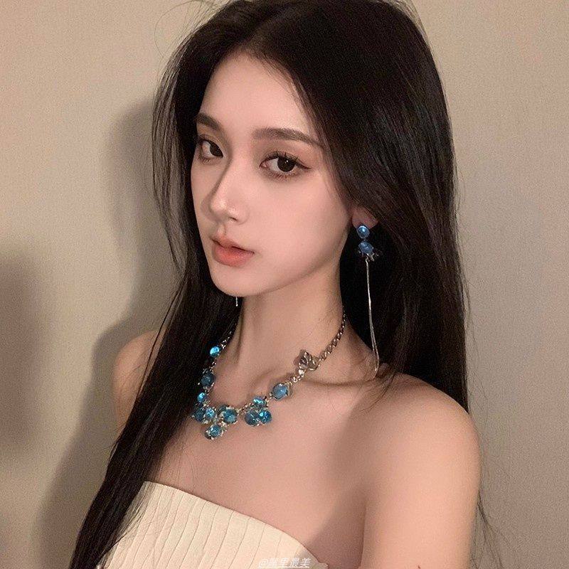 冰魄蓝水晶花朵项链女锁骨链轻奢重工颈链2025新款晚礼服配饰