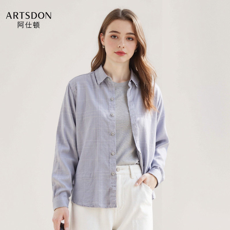 Artsdon/阿仕顿2025春秋季女士时尚百搭简约优雅格纹休闲长袖衬衫