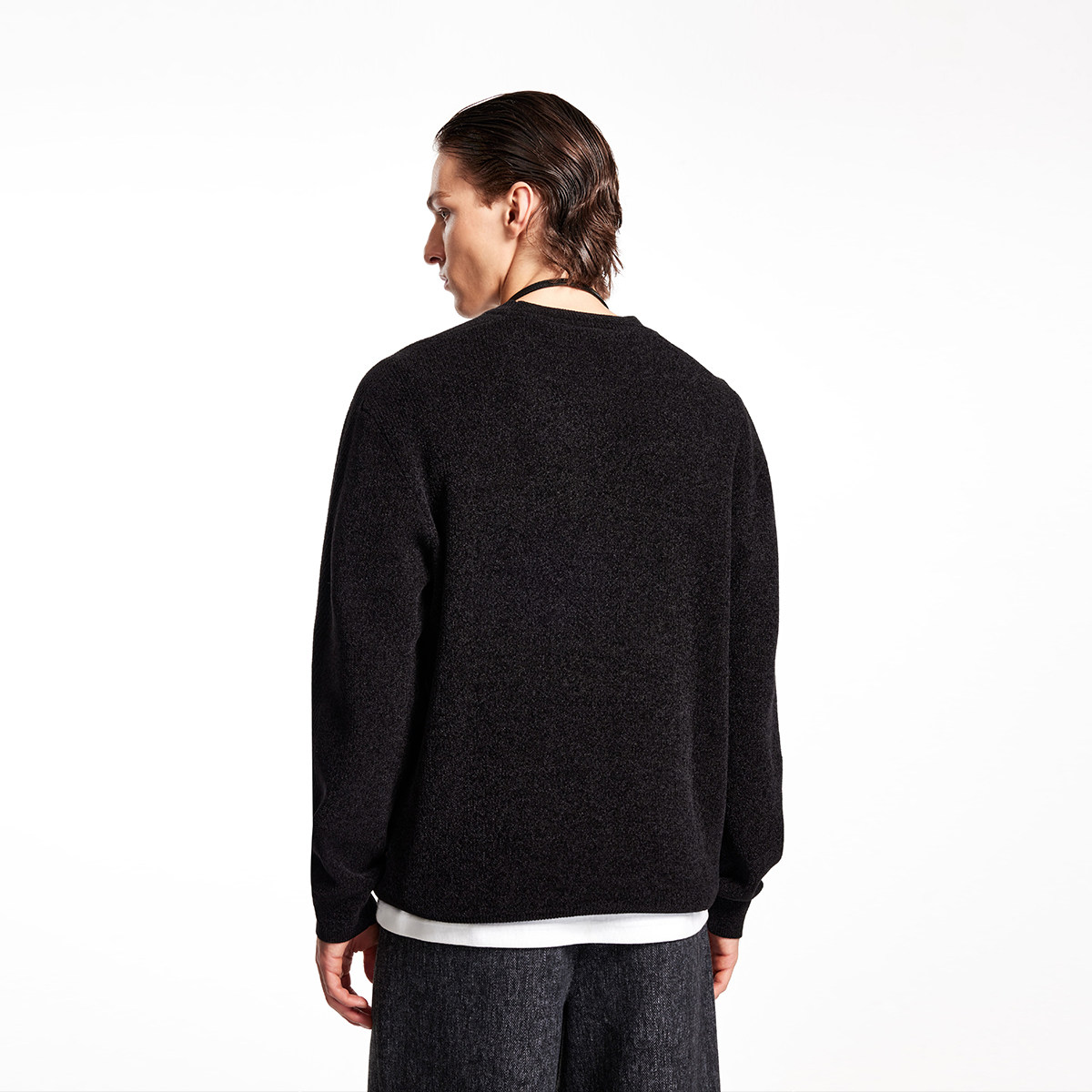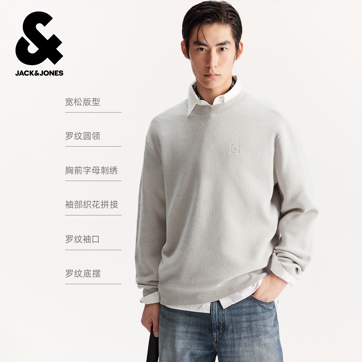 略宽松版型,舒适针织面料,罗纹圆领袖口