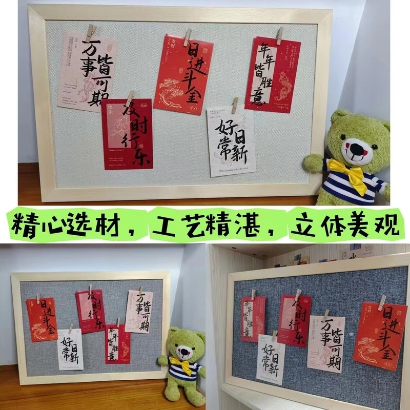 麻布软木板定制照片墙展示板ins 风留言板记事板幼儿园背景公告栏