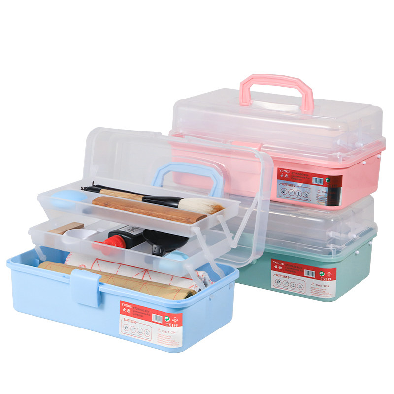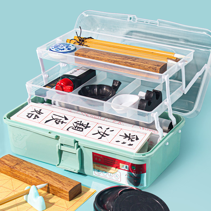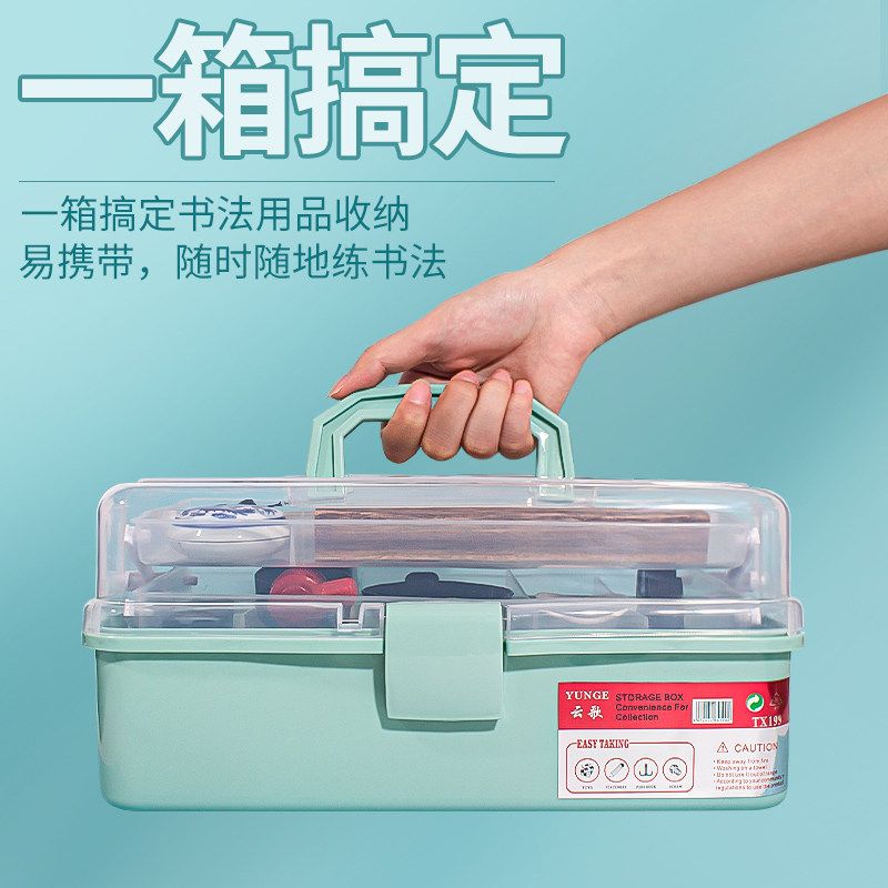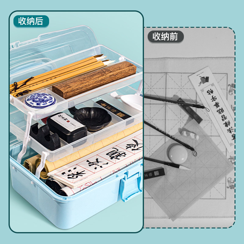 毛笔书法收纳盒专用小学生便携手提式收纳箱书法课软笔工具箱初学者毛笔盒国画颜料透明收纳箱文房四宝大容量