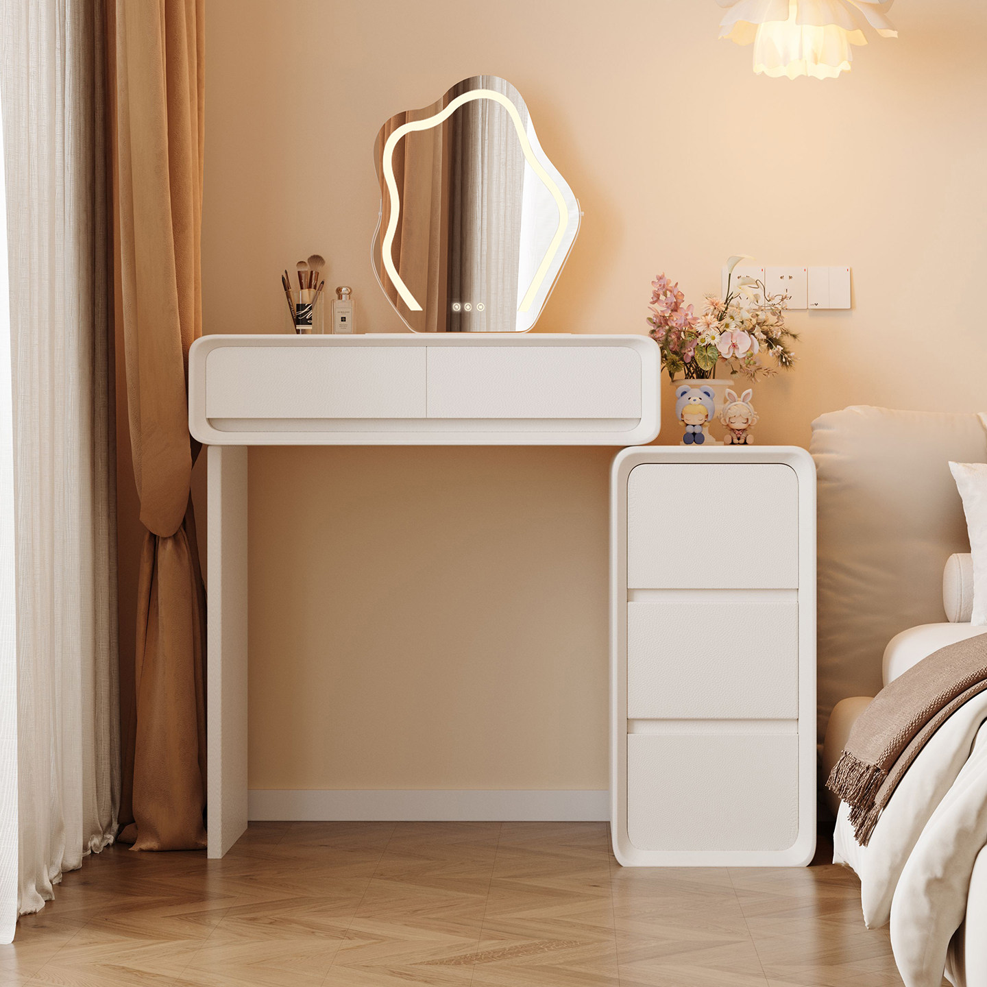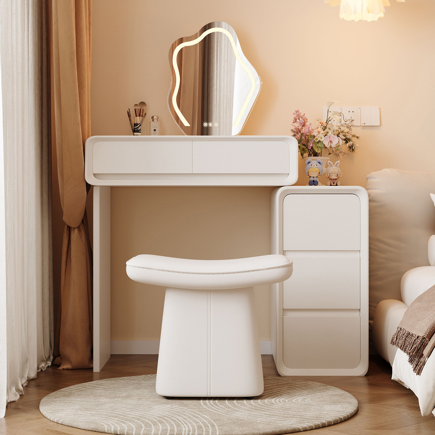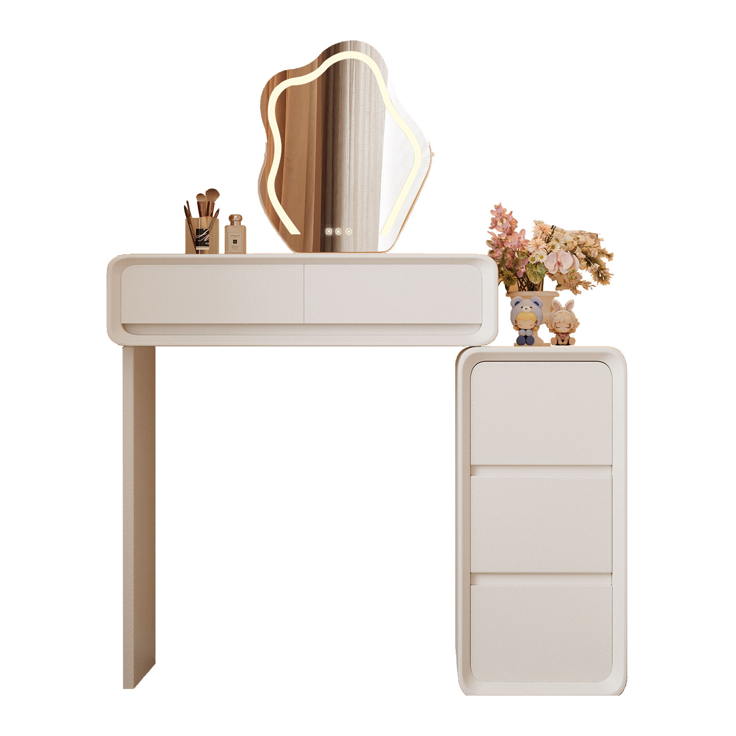 奶油风梳妆台斗柜一体卧室现代简约收纳台2026新款小户型化妆桌子
