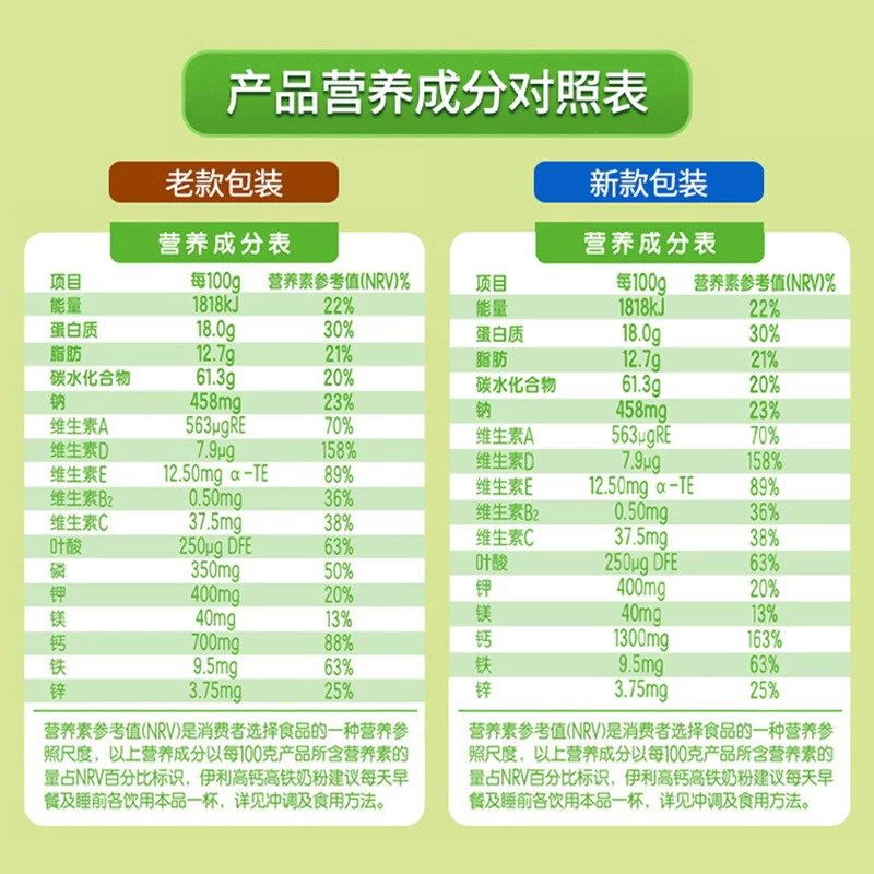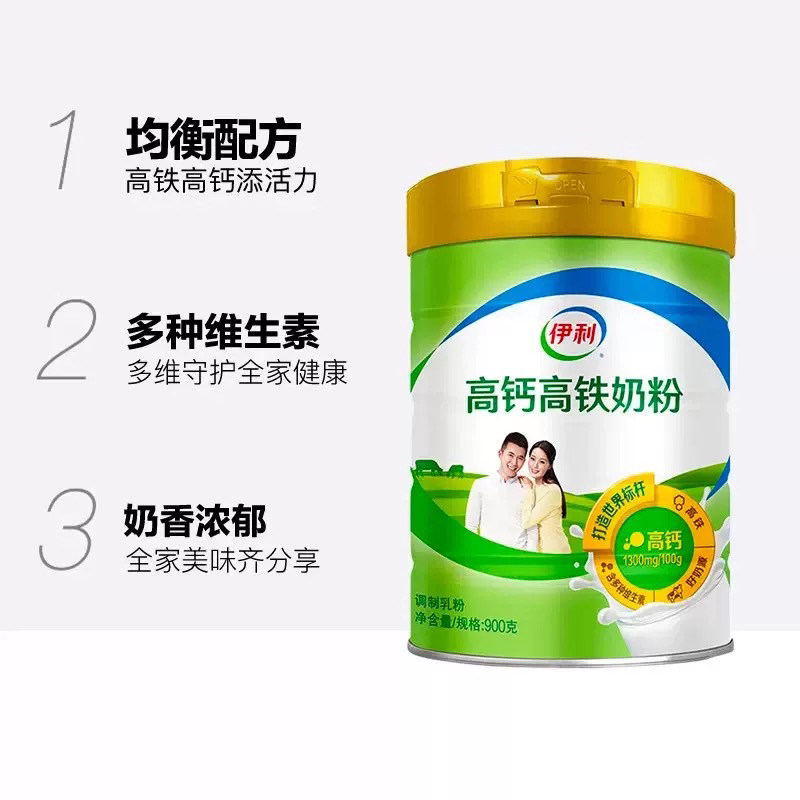 伊利成人全家营养高铁高钙牛奶粉900g*2罐早餐