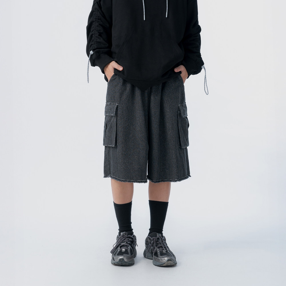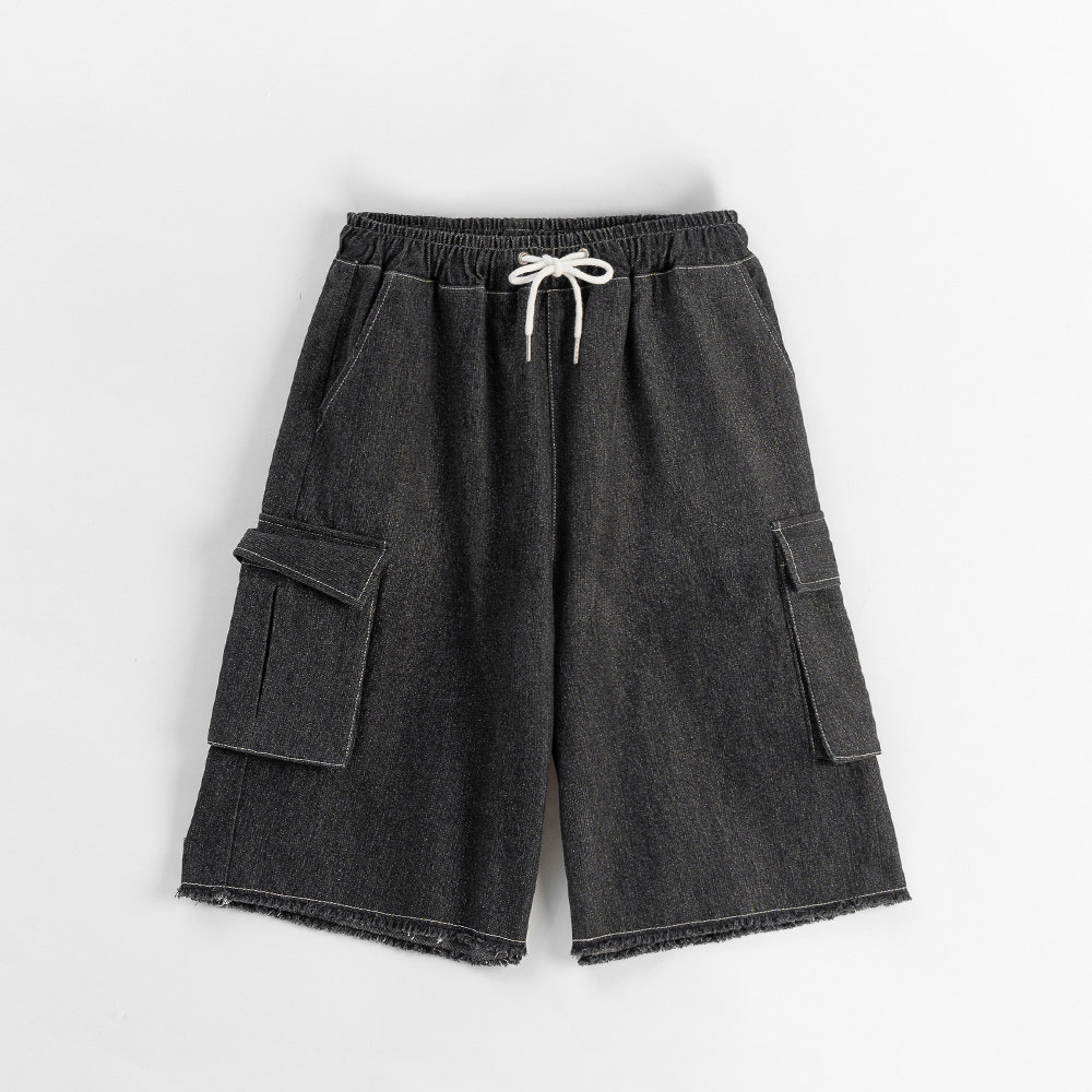 QUEENSHOP 2025秋冬户外休闲配色压线抽绳大口袋牛仔短裤04101993