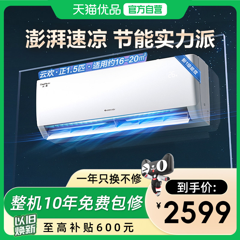 【Gree/格力官方】新一级能效正1.5匹家用变频冷暖空调挂机云欢