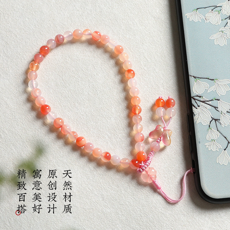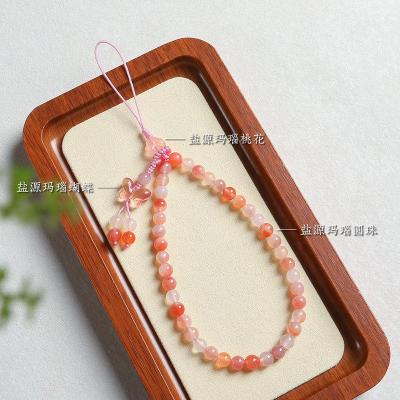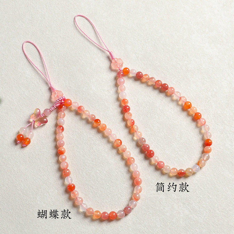 天然盐源玛瑙手机链挂件粉色少女心精致可爱蝴蝶高端手机壳串珠挂绳手工编织防丢手腕款U盘书包随身吊坠挂饰