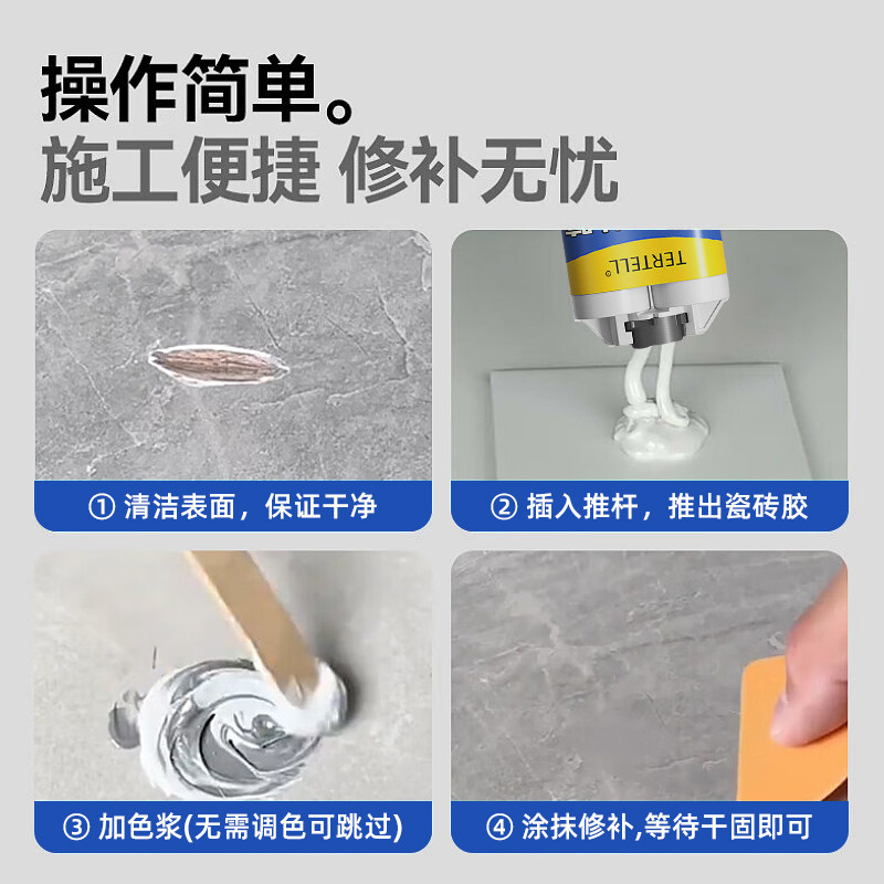 瓷砖修补剂釉面破损修复膏坑洞地砖裂缝防水胶可调色洗手盆粘接