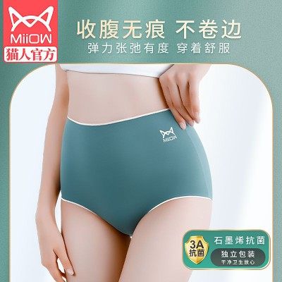 猫人女士内裤女纯棉无痕石墨烯抗菌学生韩版少女高腰女生三角裤头