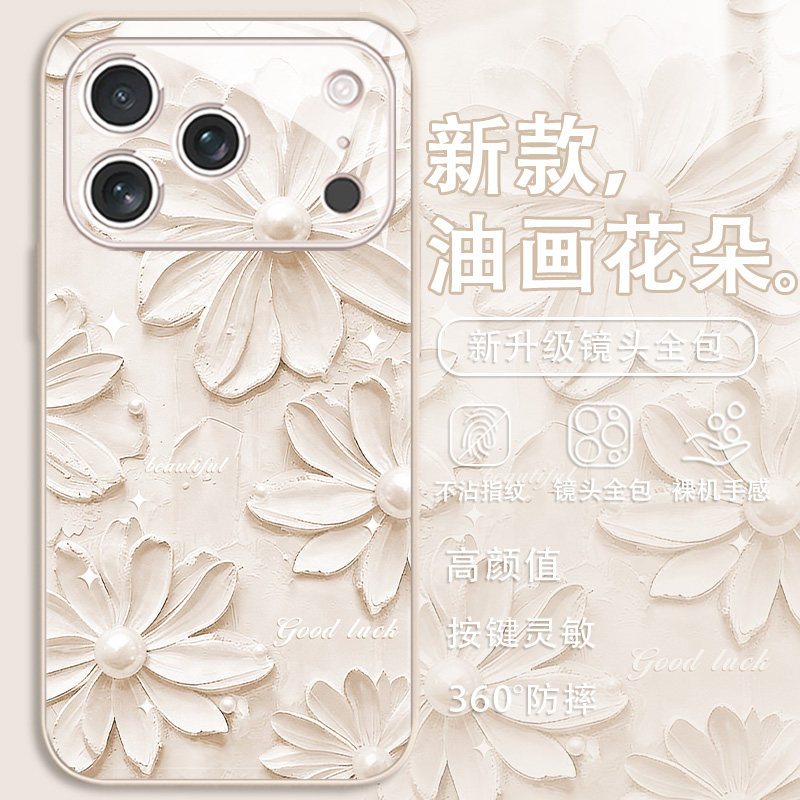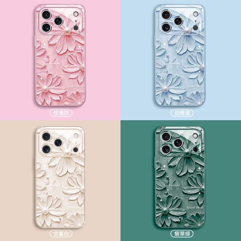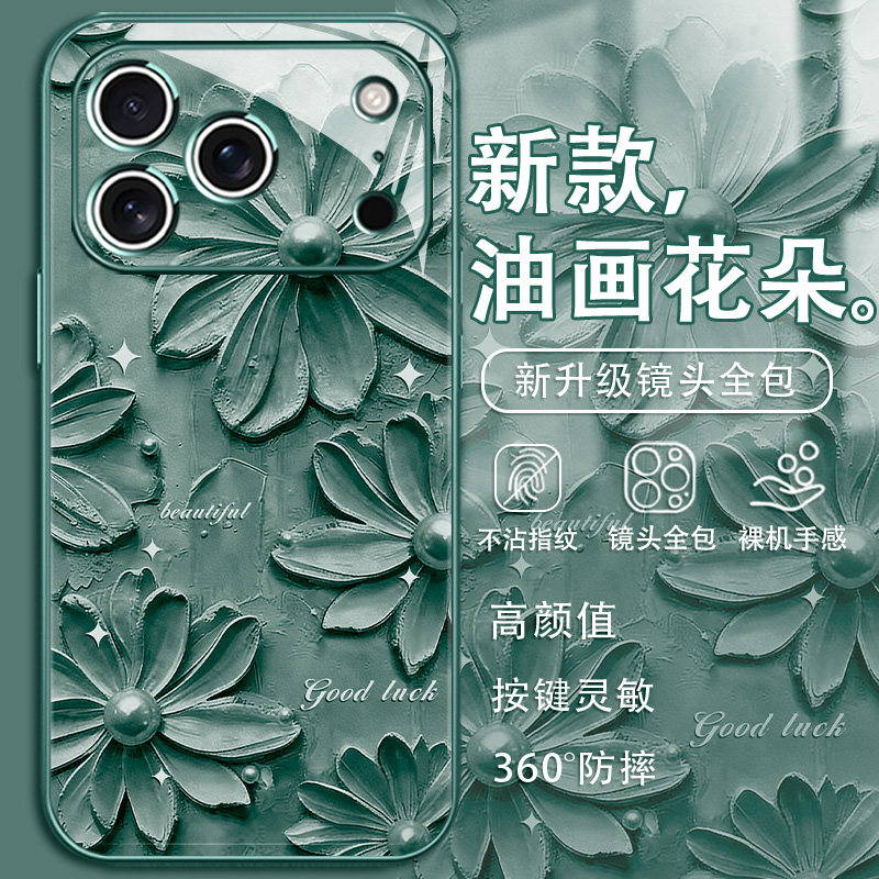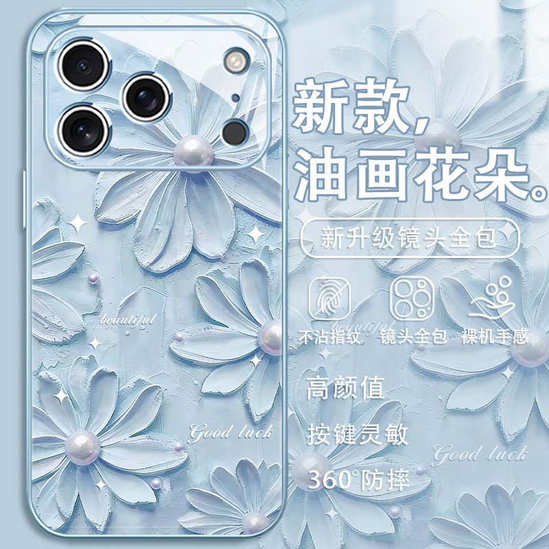 油画花朵适用iPhone17手机壳16promax新款苹果15高级感14pro文艺13玻璃12mini女款xs小清新11春日xr雏菊8/7套