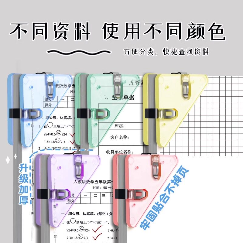 知远彩色透明三角夹边角夹试卷夹文件夹小学生试卷收纳整理资料夹子文具卷子夹书夹办公用体检票据发票长尾夹