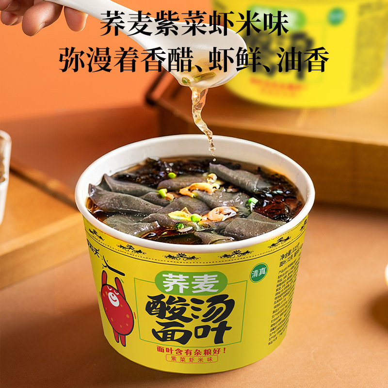吃欢天荞麦酸汤面叶清真方便面小面速食泡面宿舍冲泡桶装健康杂粮