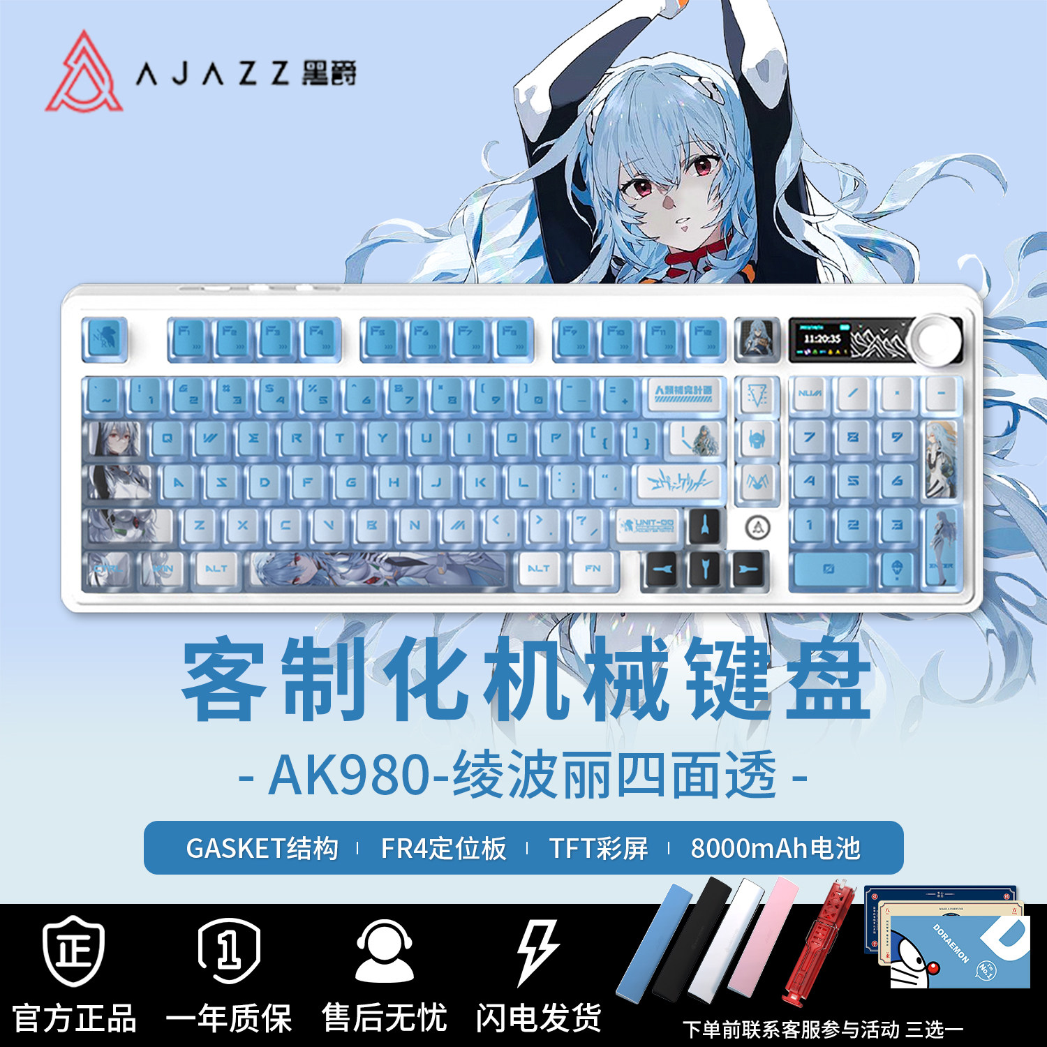 黑爵AK980绫波丽无线机械键盘可爱女生热插拔套件电竞游戏EVA联名
