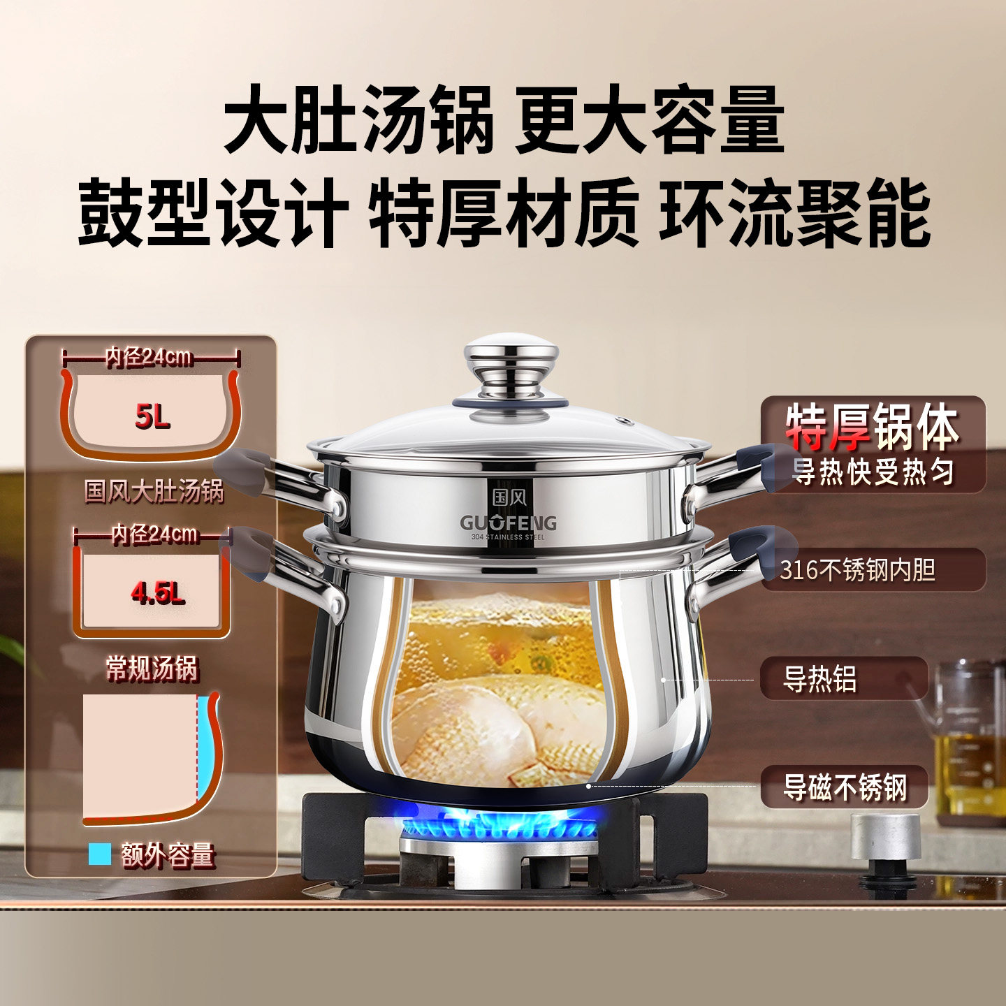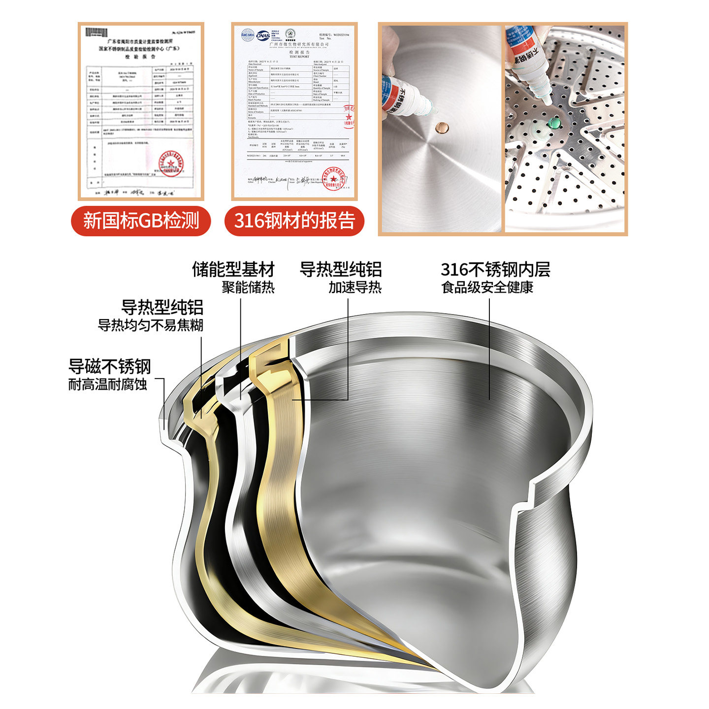 316L不锈钢 无涂层 煮粥炖汤锅