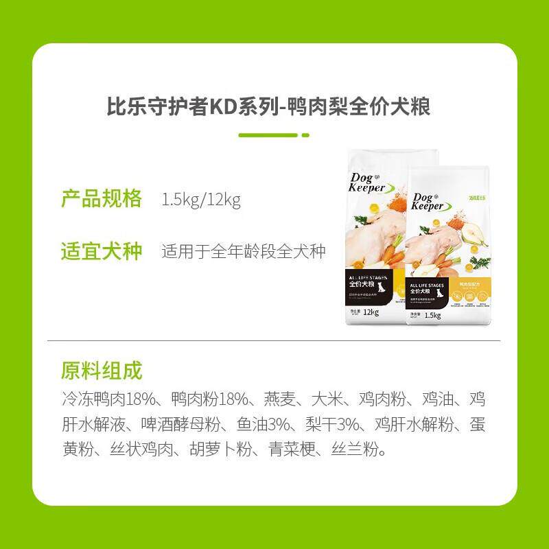 比乐狗粮 守护者系列狗粮 鸭肉梨鸭肉紫薯鸡肉红藻三文鱼油 全犬