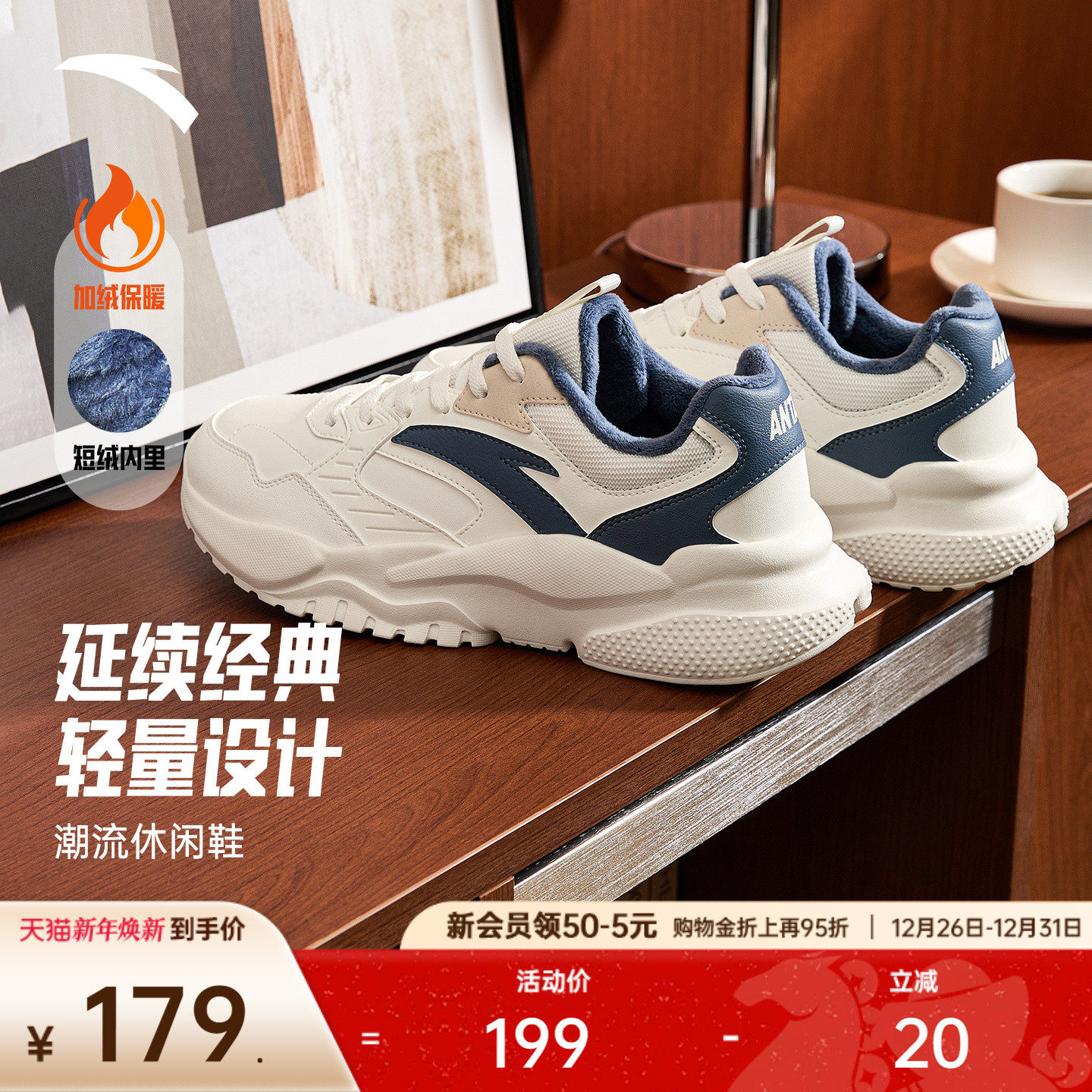 安踏革面休闲鞋男子厚底加绒保暖二棉鞋增高软底舒适老爹鞋运动鞋