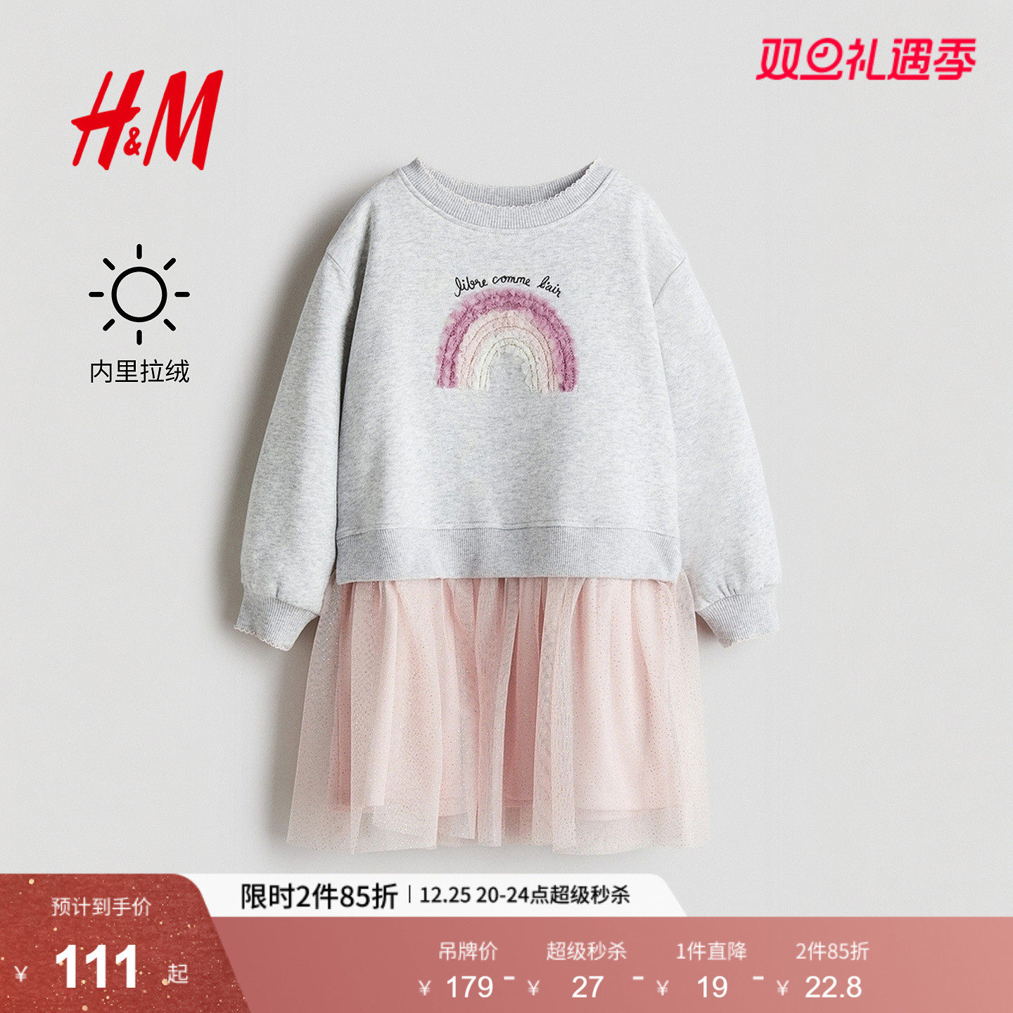 HM童装儿童女童裙子2025年冬季新款薄纱裙摆圆领连衣裙1303542