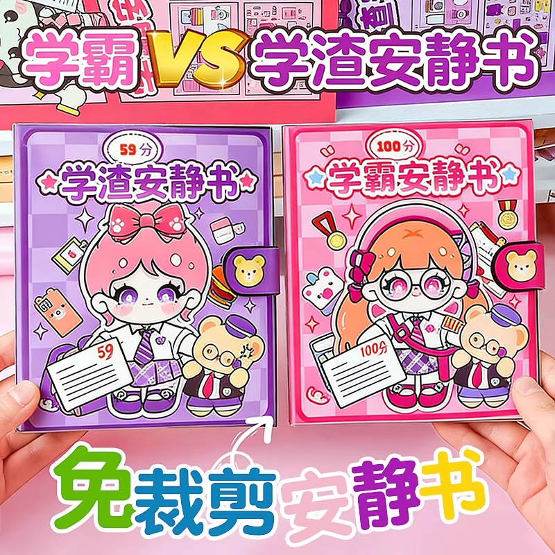 2025安静书新款女孩免裁剪学霸学渣迷你贴纸果冻磁力贴画儿童玩具