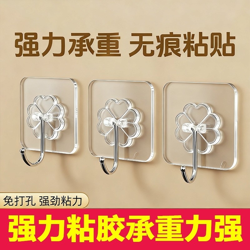 粘钩强力无痕挂钩承重免打孔承重粘胶门后浴室厨房墙壁透明挂钩
