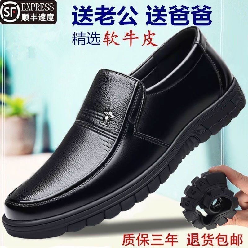 皮鞋男鞋真皮牛皮新款正装软底夏季透气休闲中老年爸爸鞋黑色圆头