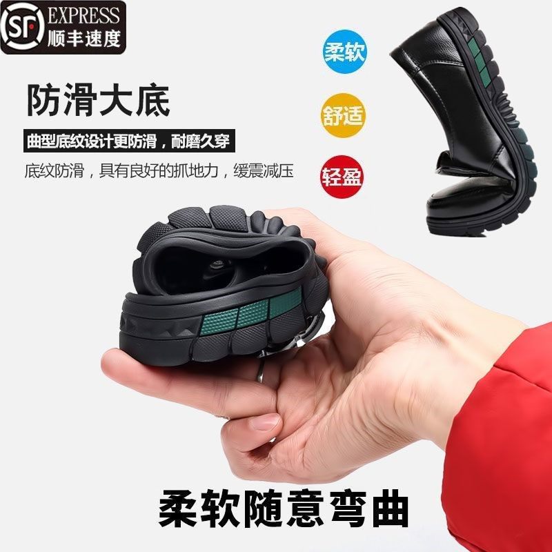 老人头男鞋冬季皮鞋男士中年商务休闲皮鞋真皮加绒软底舒适爸爸鞋