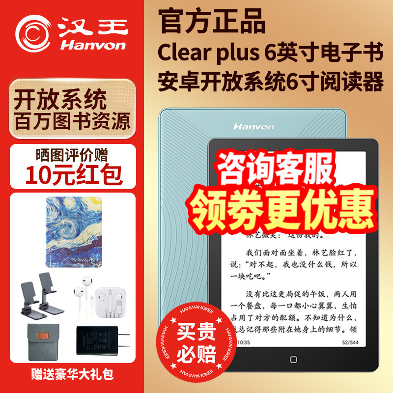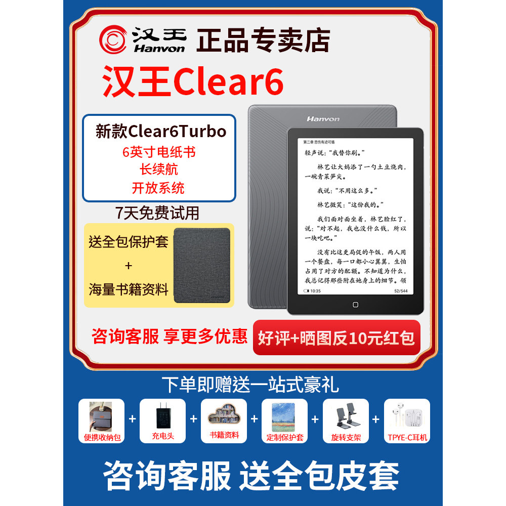【入会立减】汉王clear6plus6英寸2025新款碧水青色电子墨水屏阅读器电子纸护眼读书阅览器电纸书电子书看书