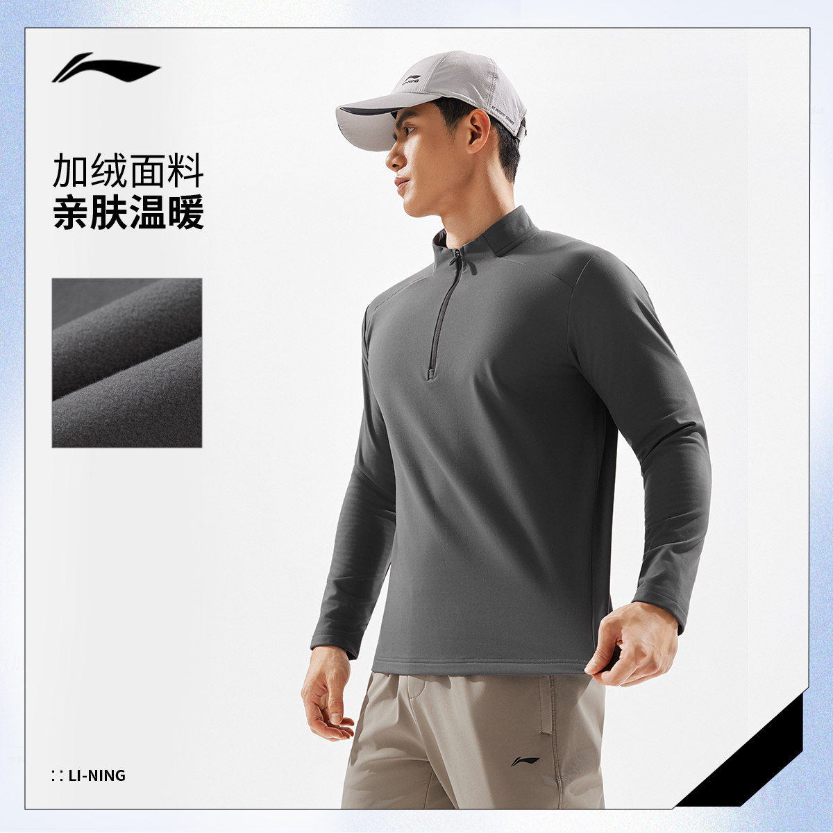 李宁长袖T恤男士官方新款健身跑步冬季加绒保暖上衣针织运动卫衣