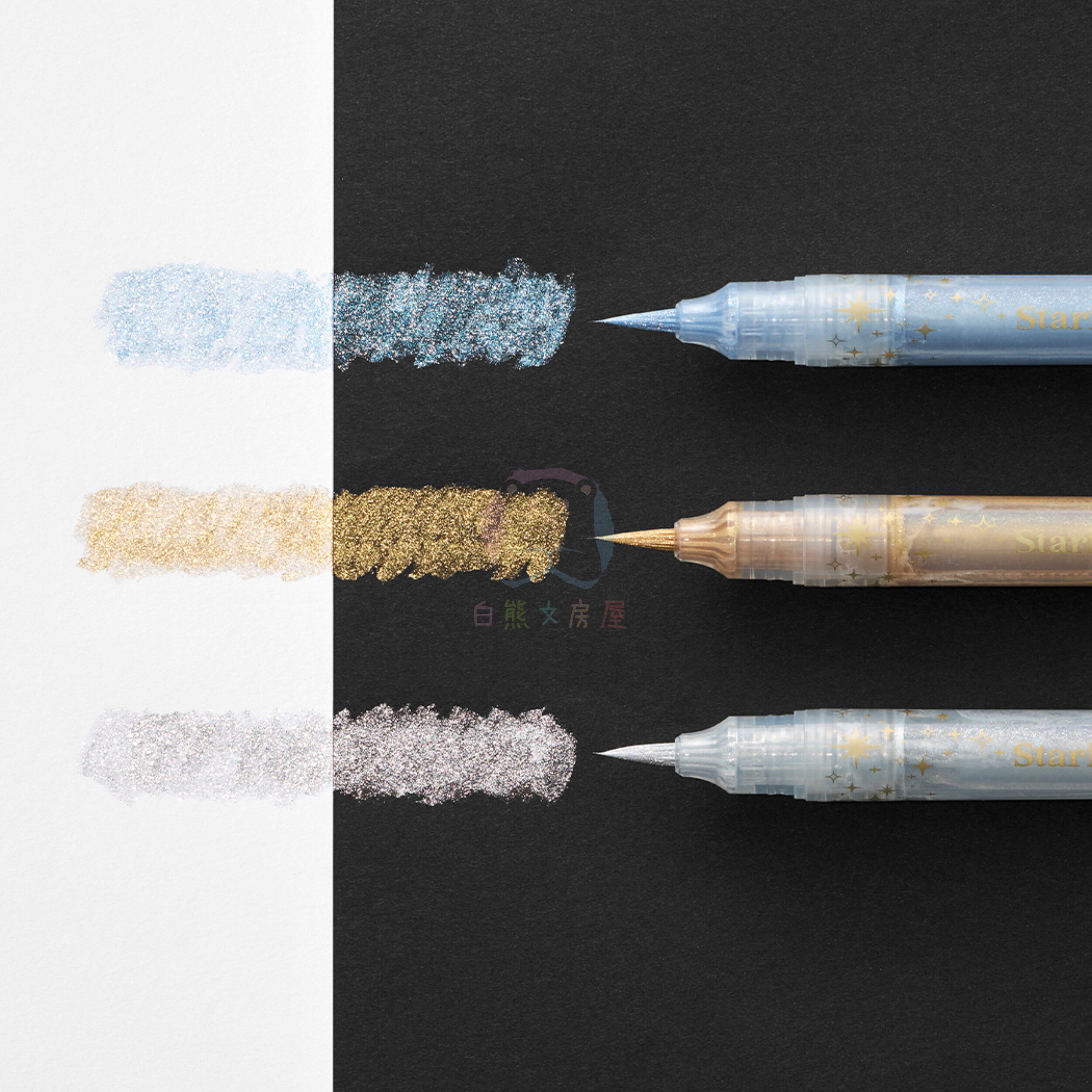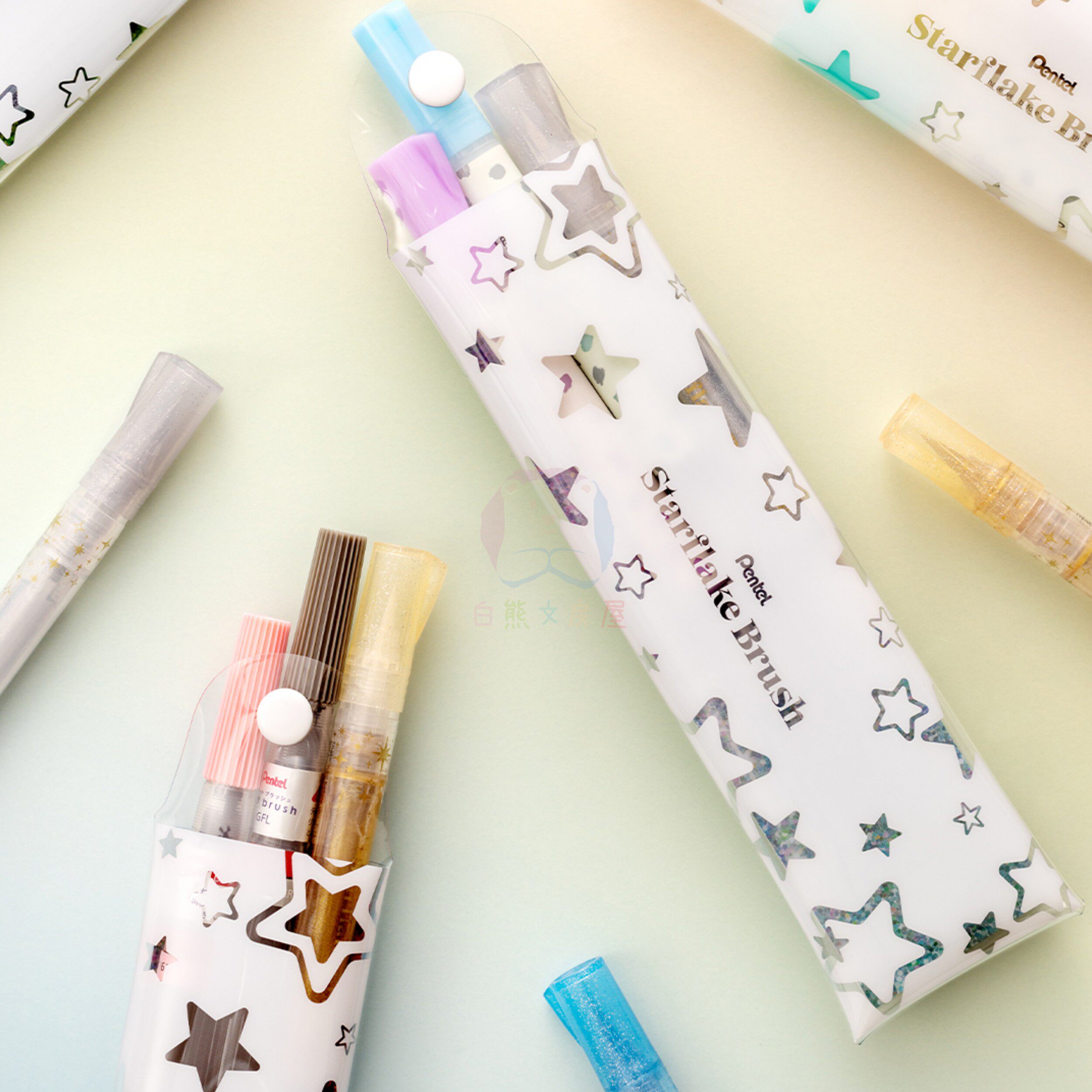 日本pentel派通闪亮腮红色软毛笔starflake brush便携绘图水彩笔