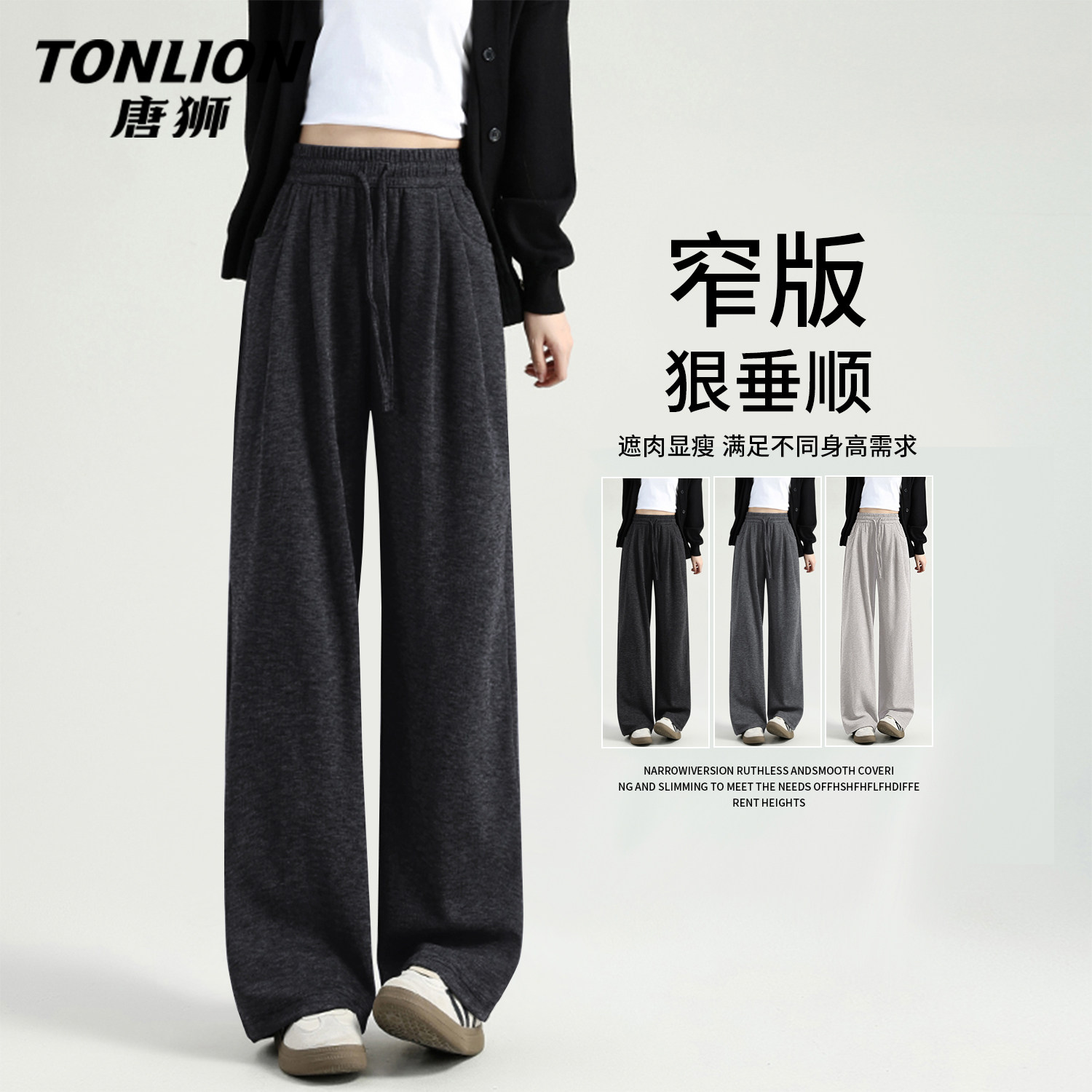 唐狮官方黑色糯米裤女2026新款春秋款女士松弛感直筒休闲阔腿裤VB