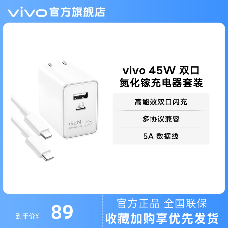 vivo 45W双口氮化镓充电套装适用vivo/iQOO原装官方旗舰店适用于iphone