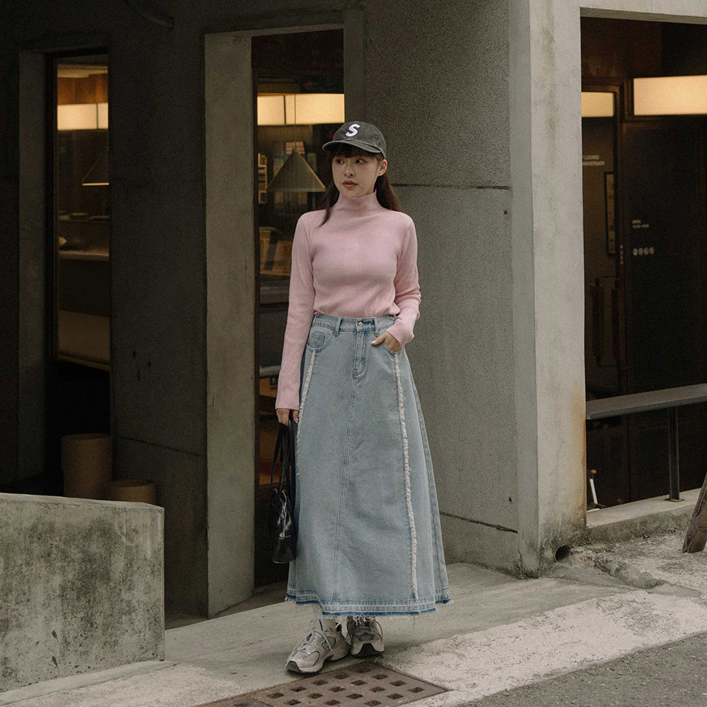 QUEENSHOP 2025秋冬新品女装简约坑条针织高领上衣01099285