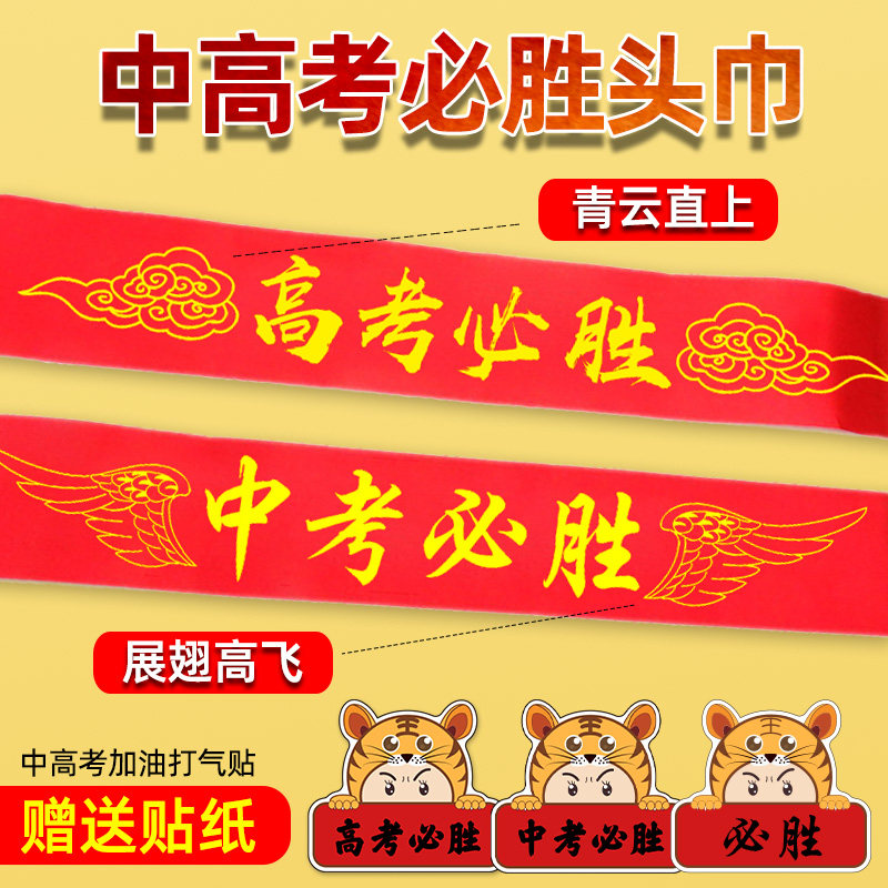 高考头巾头带中考必胜百日誓师加油拼搏必胜红丝带绸带励志助威打气学生中高考必胜头绳比赛活动团建头饰红布