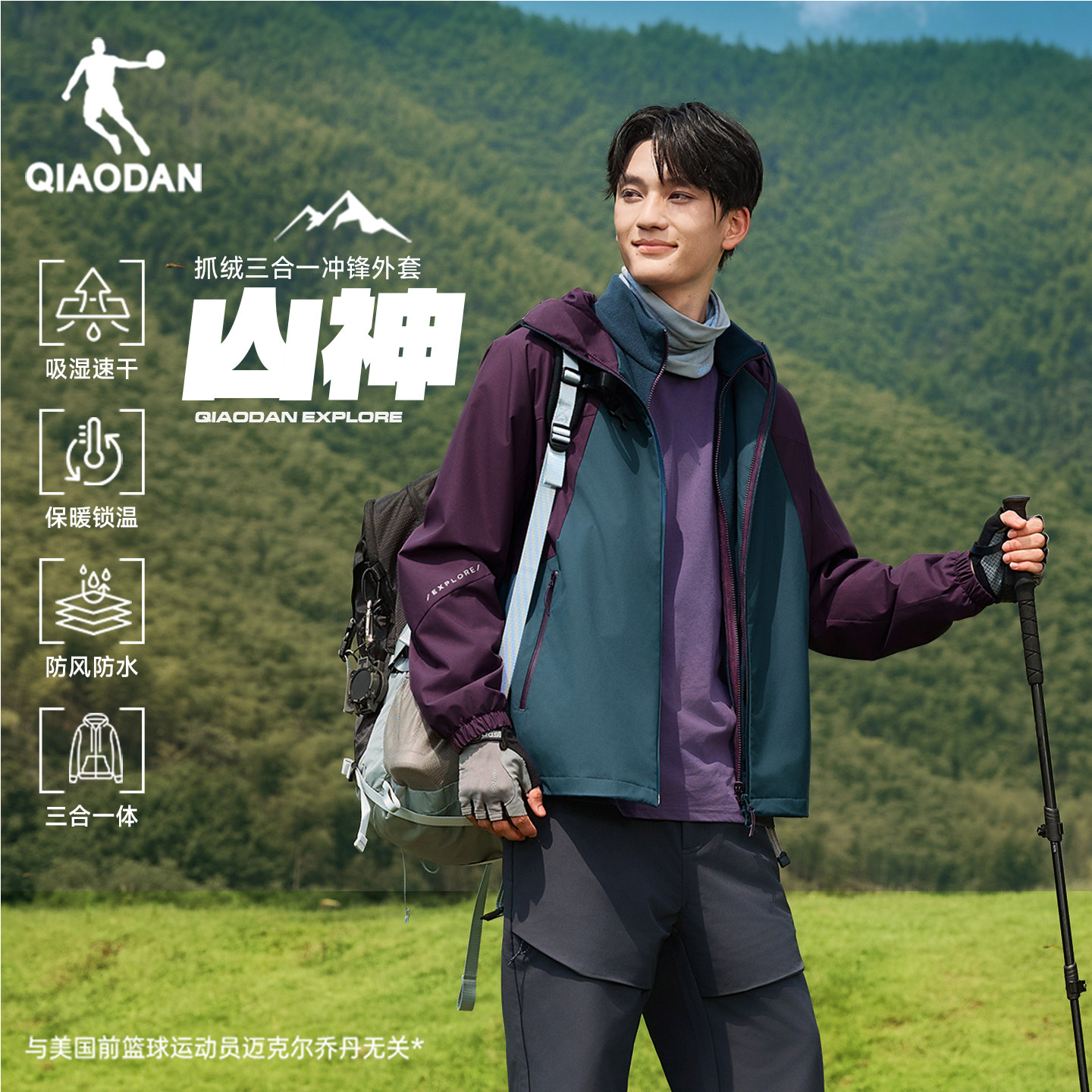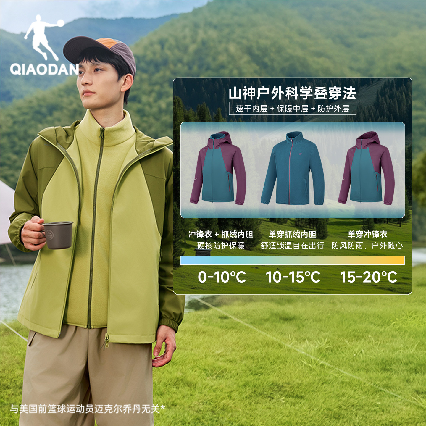 乔丹官方加绒冲锋外套三合一运动风衣男秋夏新款保暖防风户外登山