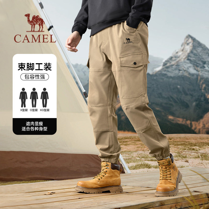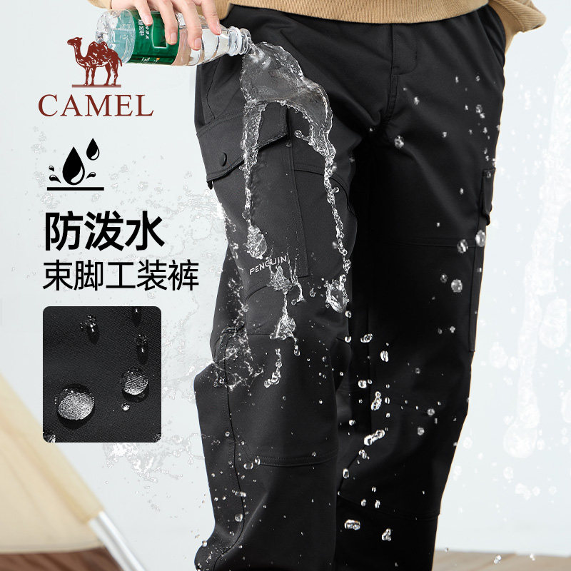 骆驼男装工装裤男春季黑色防泼水山系登山束脚休闲软壳长裤子