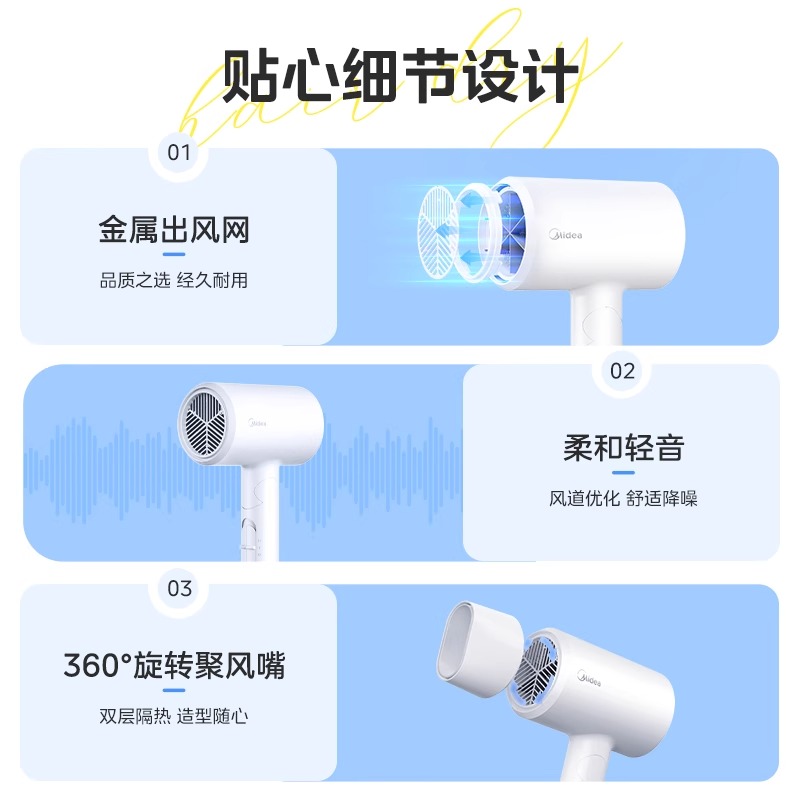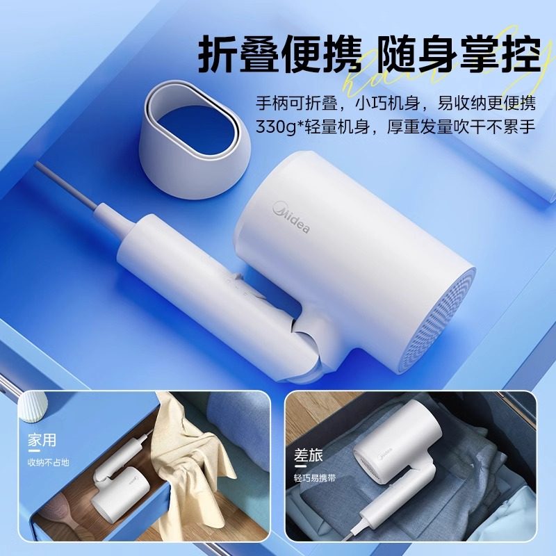 美的吹风机折叠家用负离子电吹风护发大风力风筒机宿舍用学生便携
