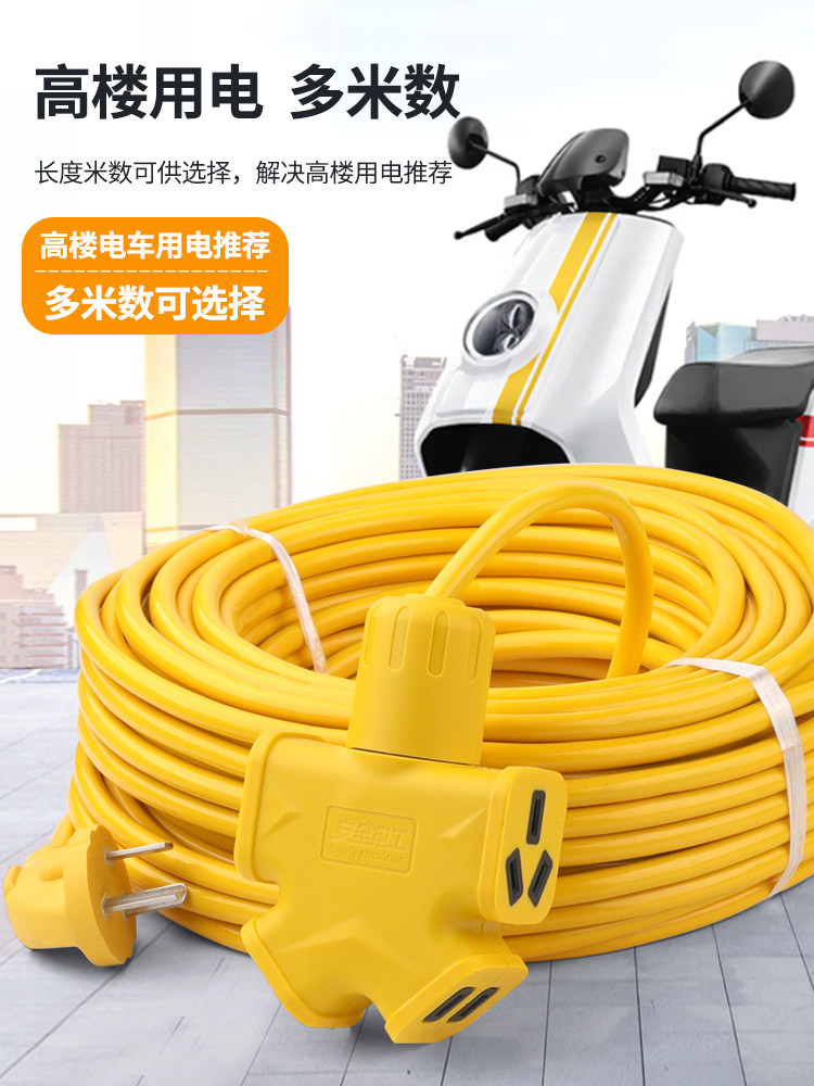 电动车小电驴充电线延长线插座10A大功率防摔插线板2米50米充电器