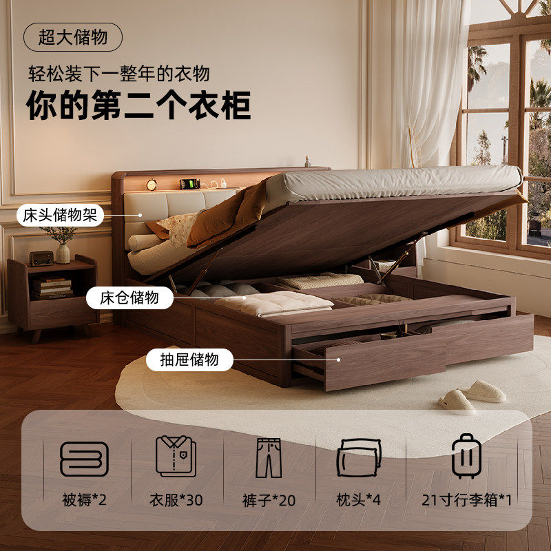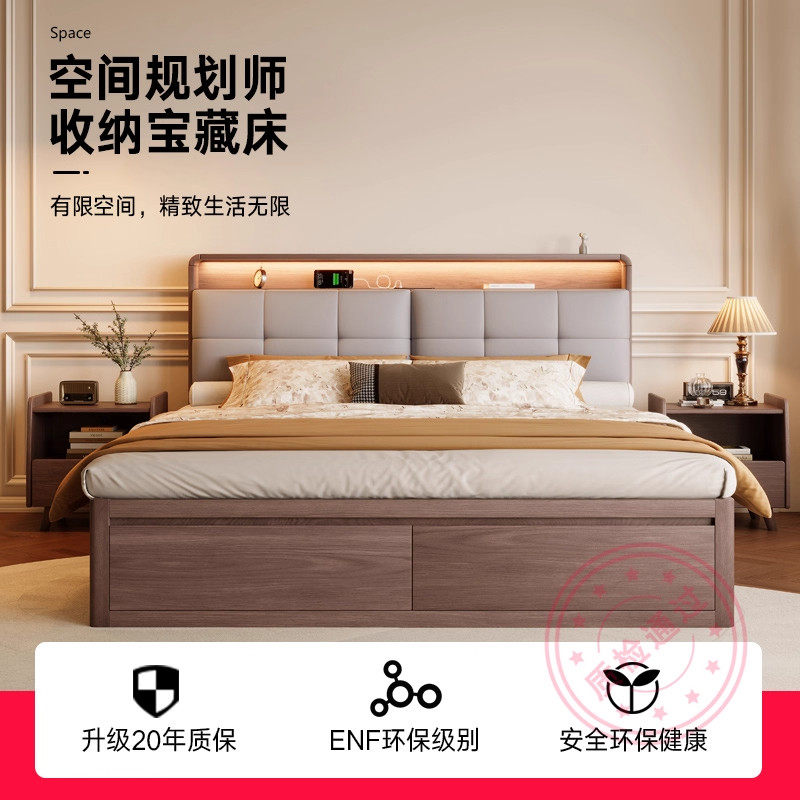 全实木床家用ENF级现代简约轻奢双人1.5米主卧高箱储物箱体床大床
