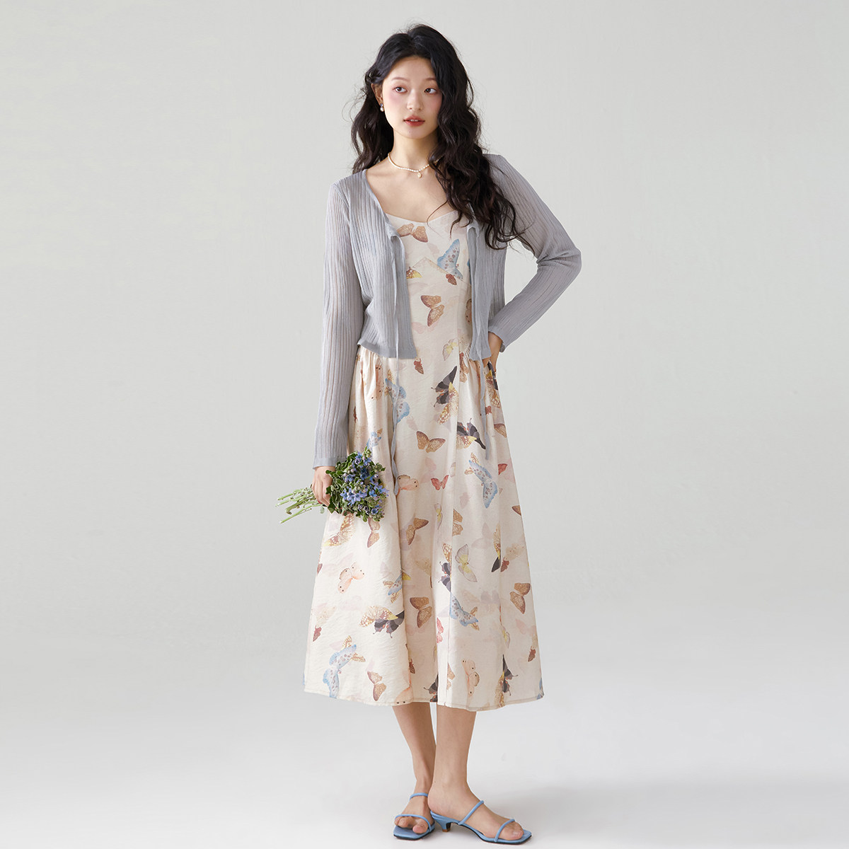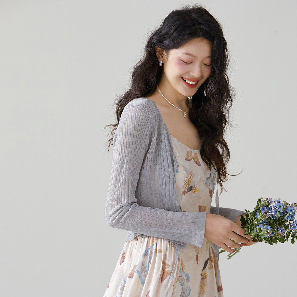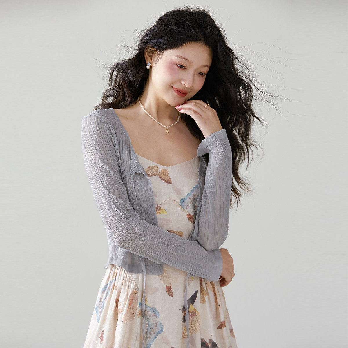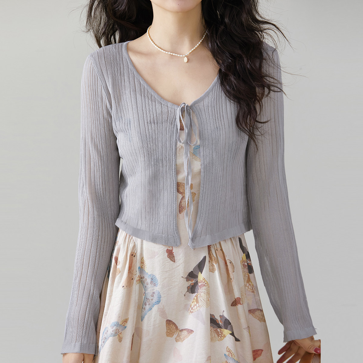 one more法式木耳边系带披肩外搭针织开衫女2025夏季新款外搭罩衫